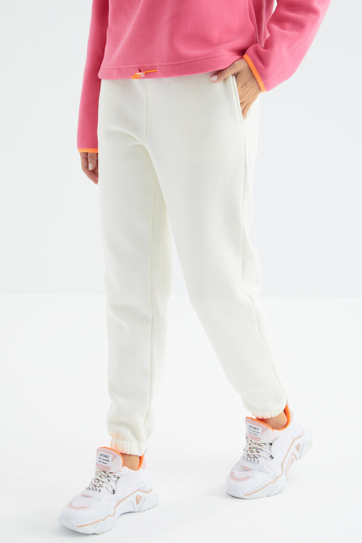 TommyLife Ekru Yüksek Bel Şardonlu 3 İplik Pamuklu Basic Kadın Eşofman Alt - 94624