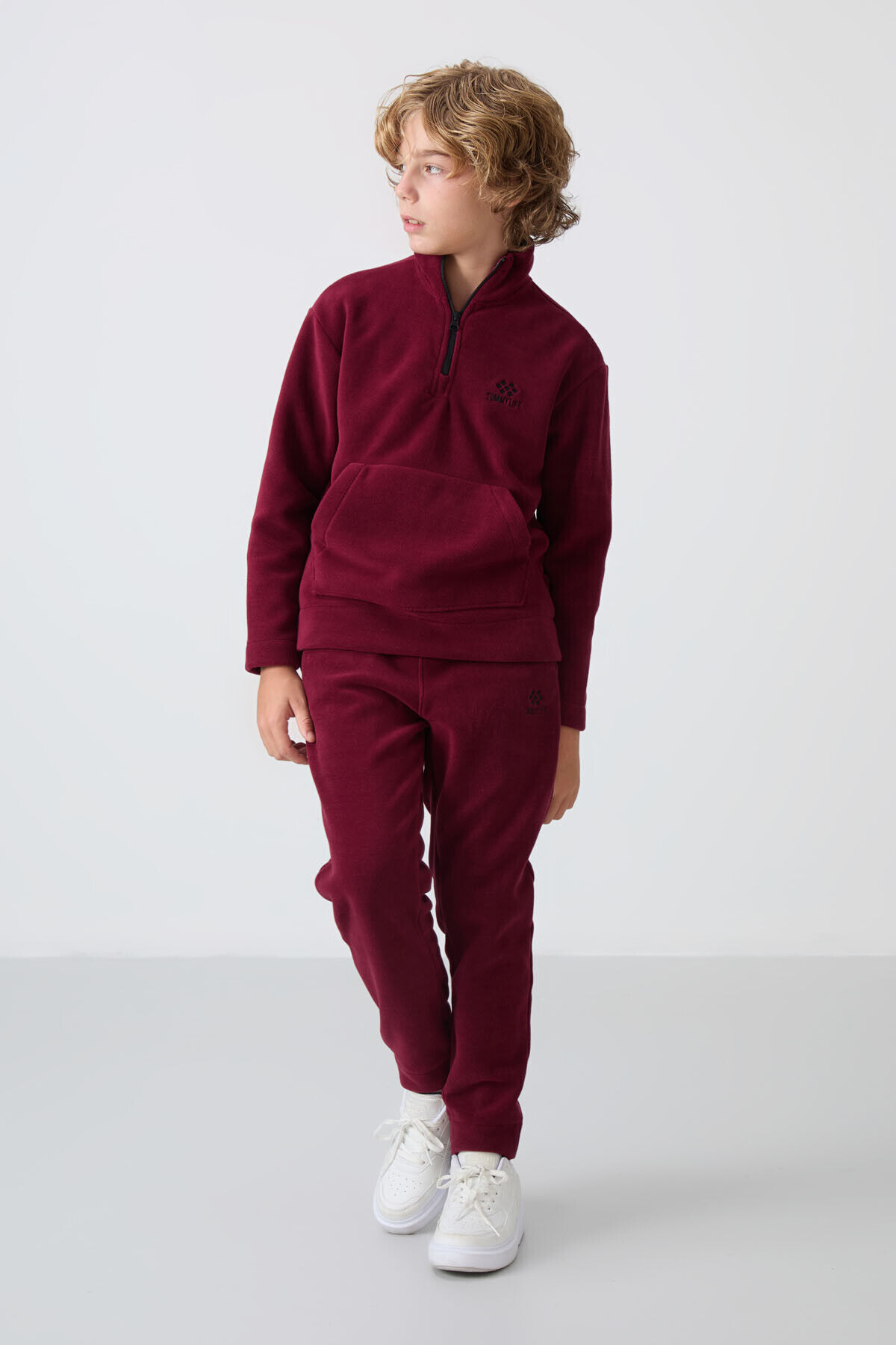 TommyLife Erguvan Kalın Yumuşak Dokulu Standart Fit Nakışlı Polar Erkek Çocuk Eşofman Takım - 11218