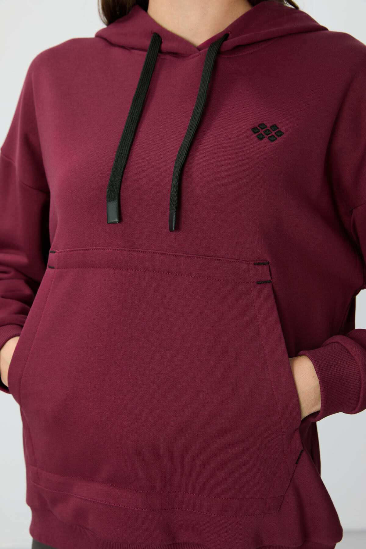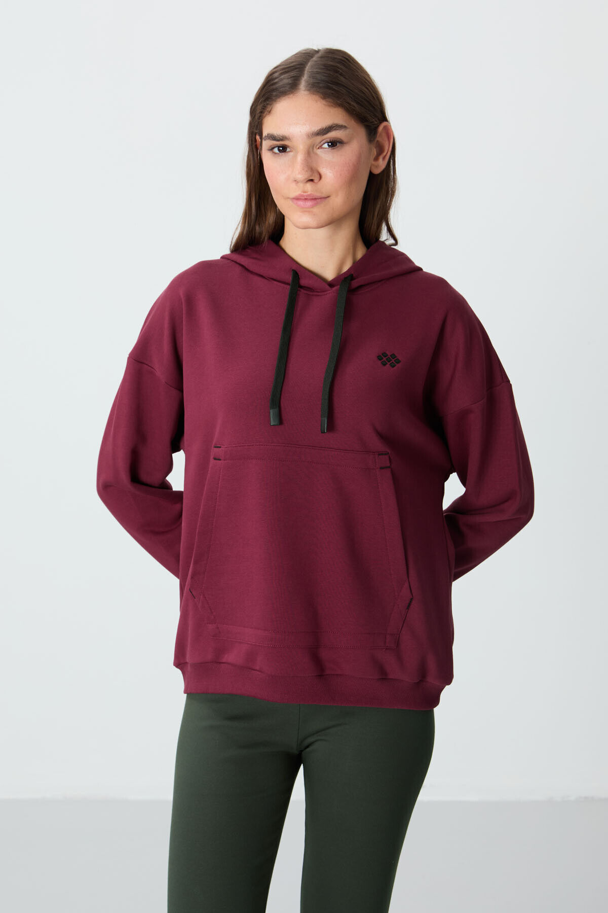 Erguvan Kompakt Pamuklu Kalın Pürüzsüz Dokulu Kapüşonlu Oversize Fit Kadın Sweatshirt - 97291
