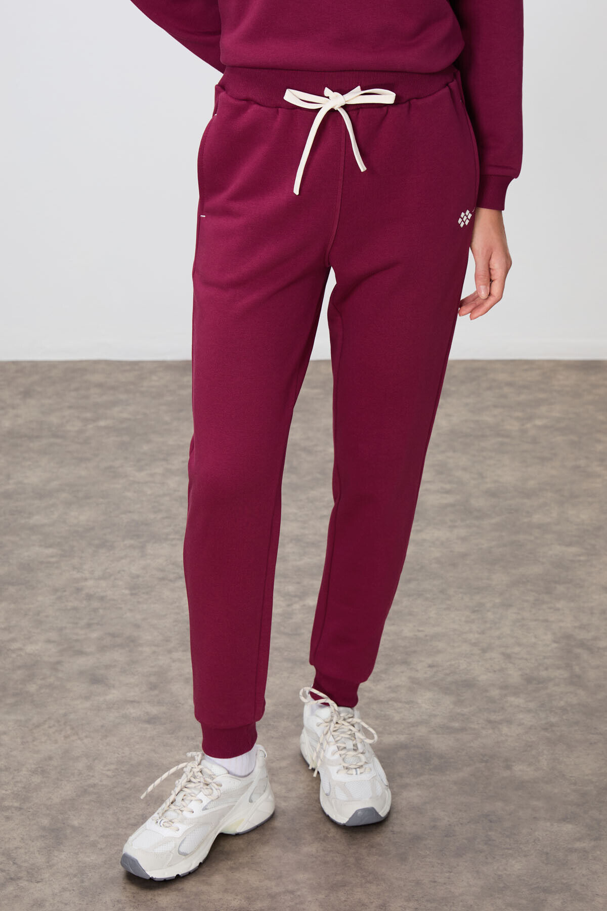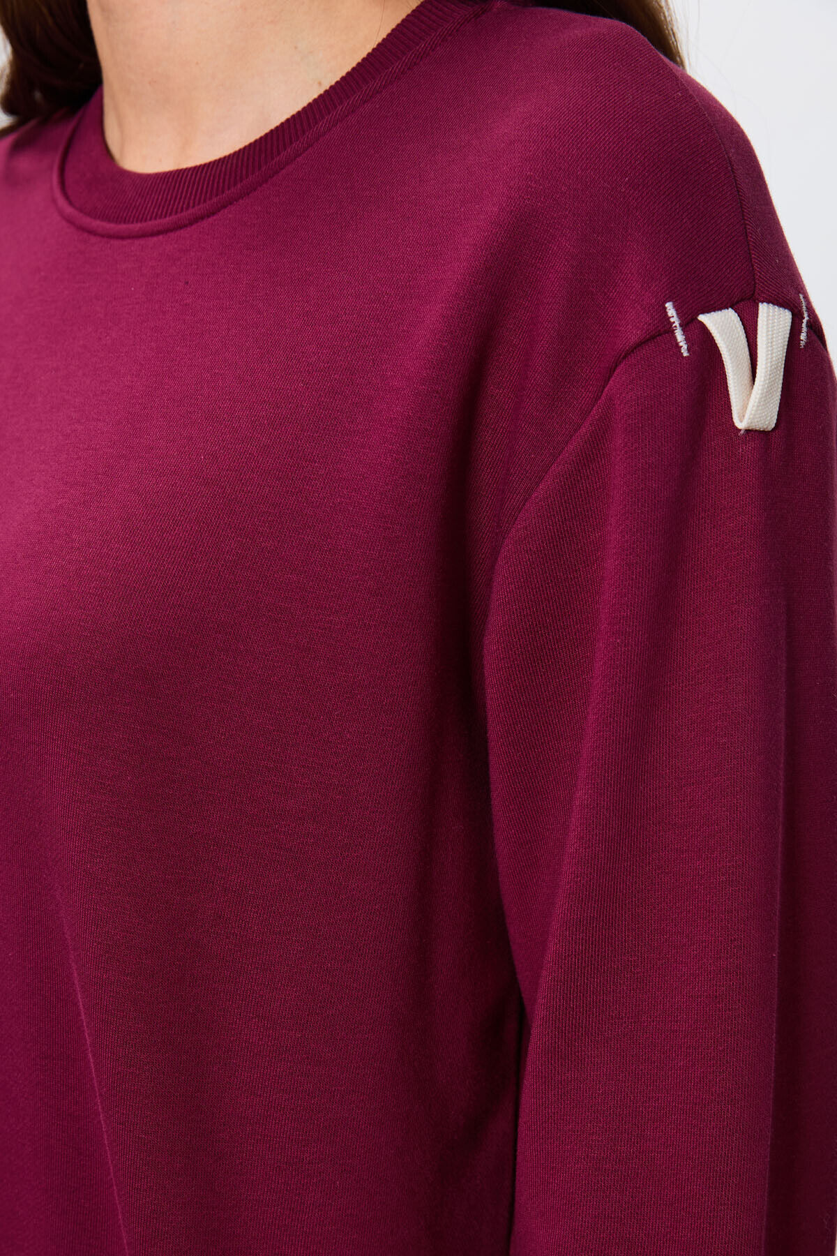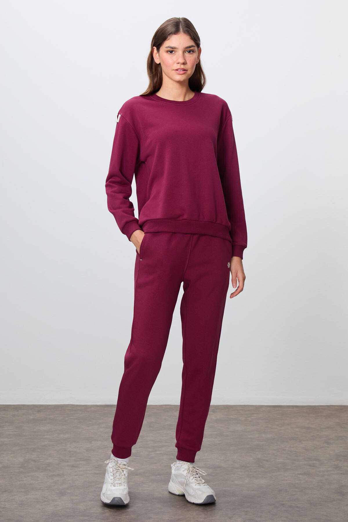 TommyLife Erguvan Kompakt Pamuklu Kalın Pürüzsüz Dokulu O Yaka Oversize Fit Kadın Eşofman Takım - 95341