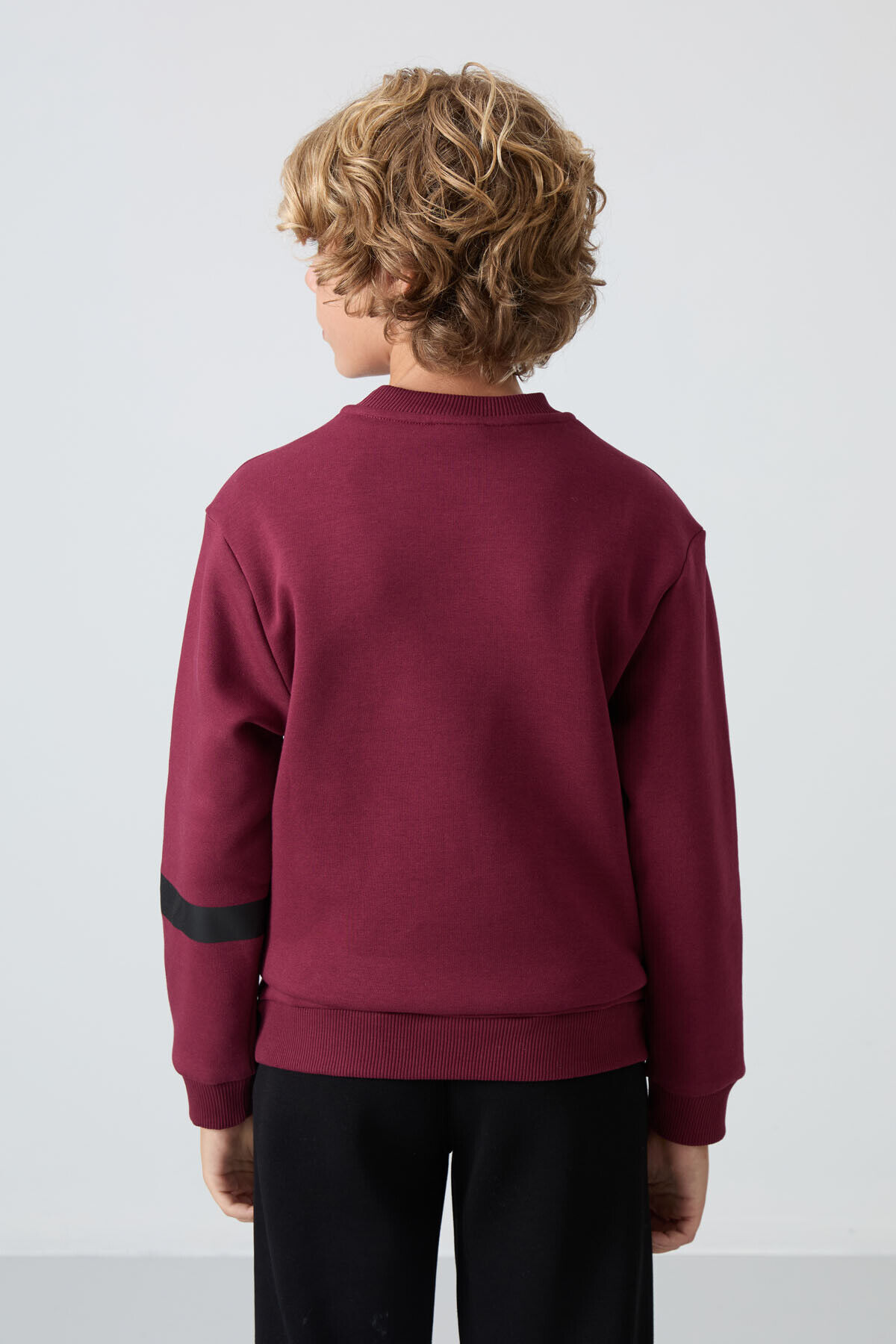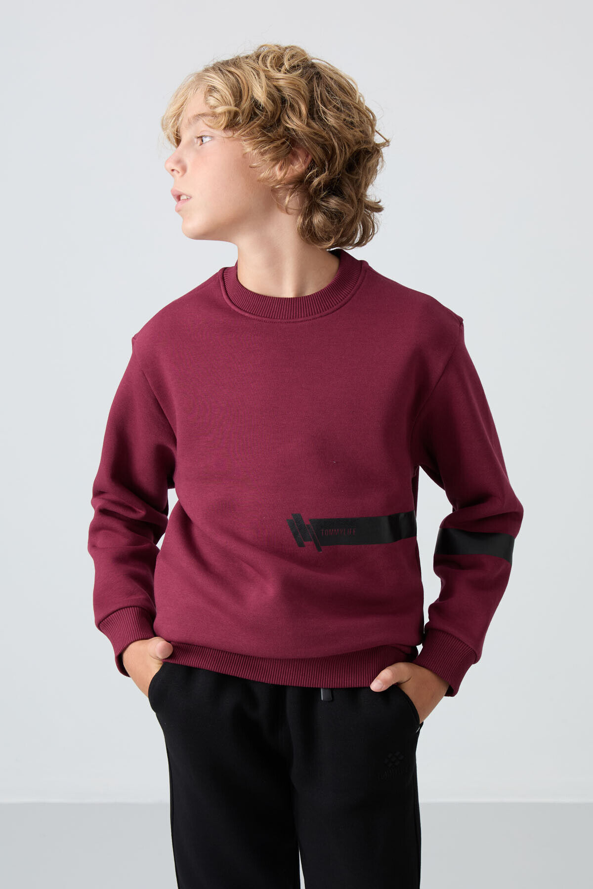 TommyLife Erguvan Pamuklu Kalın İçi Tüylü Yumuşak Dokulu Standart Fit Baskılı Erkek Çocuk Sweatshirt - 11238