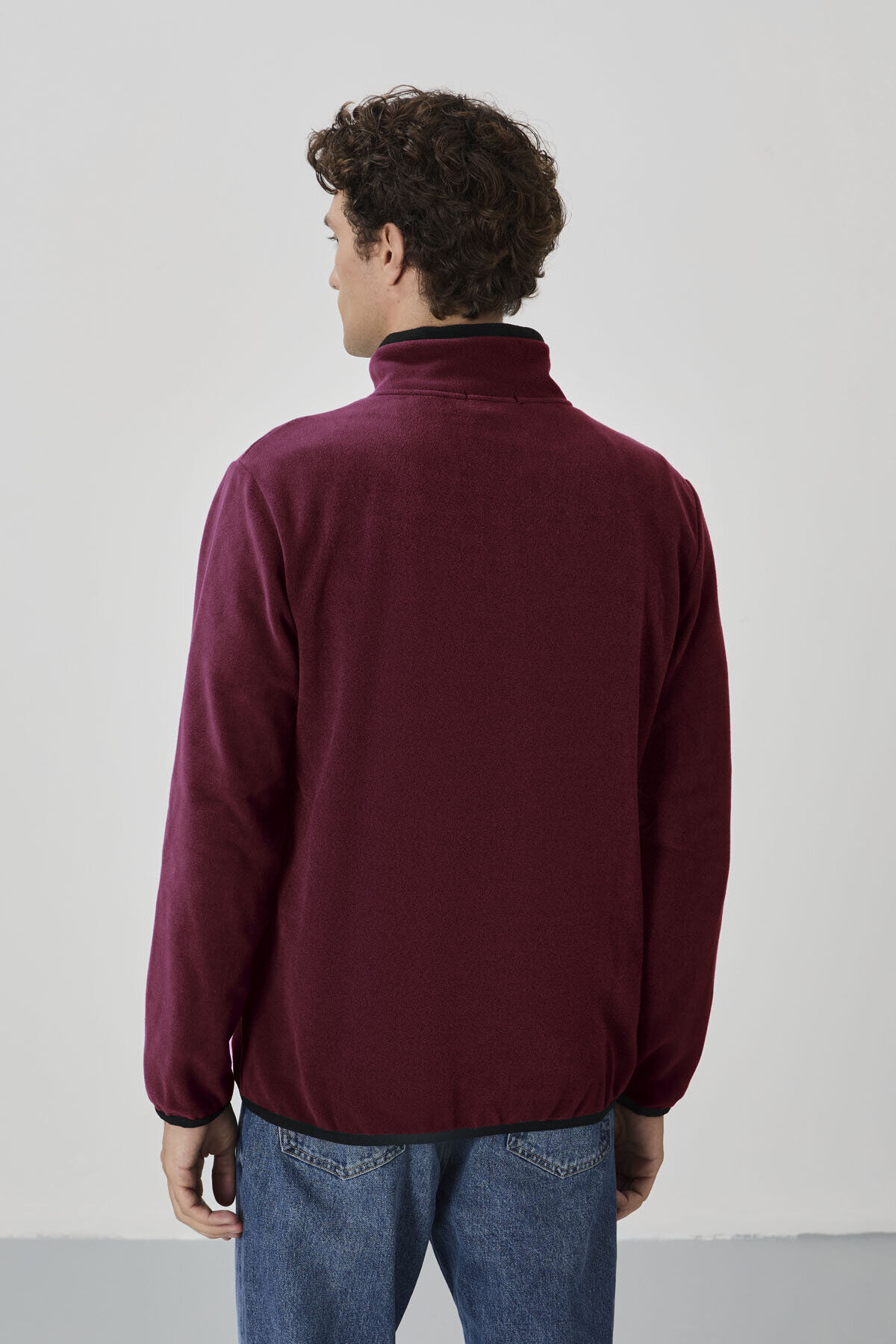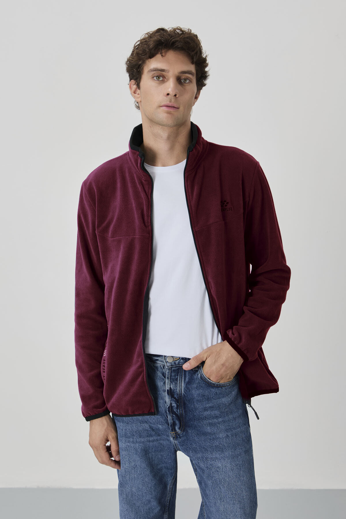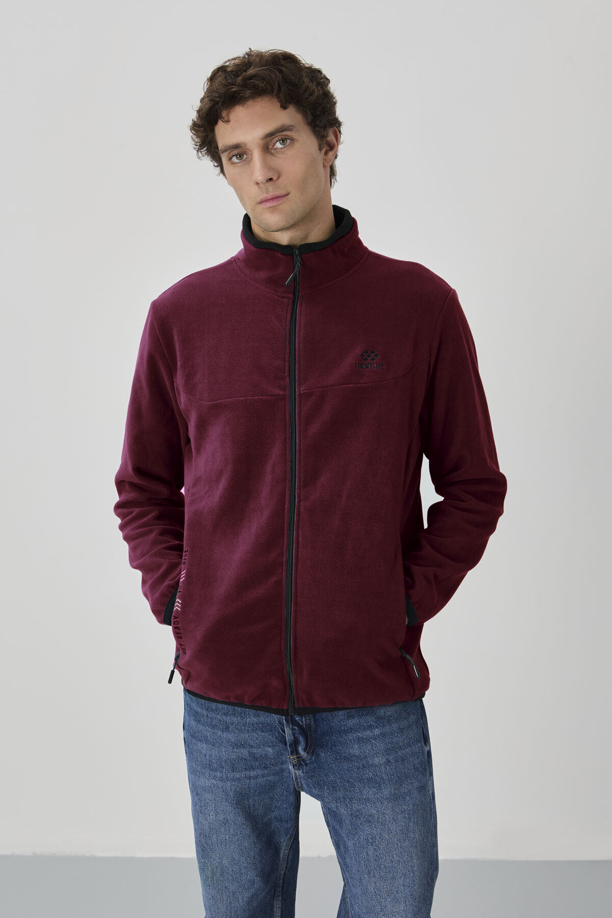 TommyLife Erguvan Yazı Nakışlı Dik Yaka Fermuarlı Standart Kalıp Erkek Sweatshirt Polar - 87992