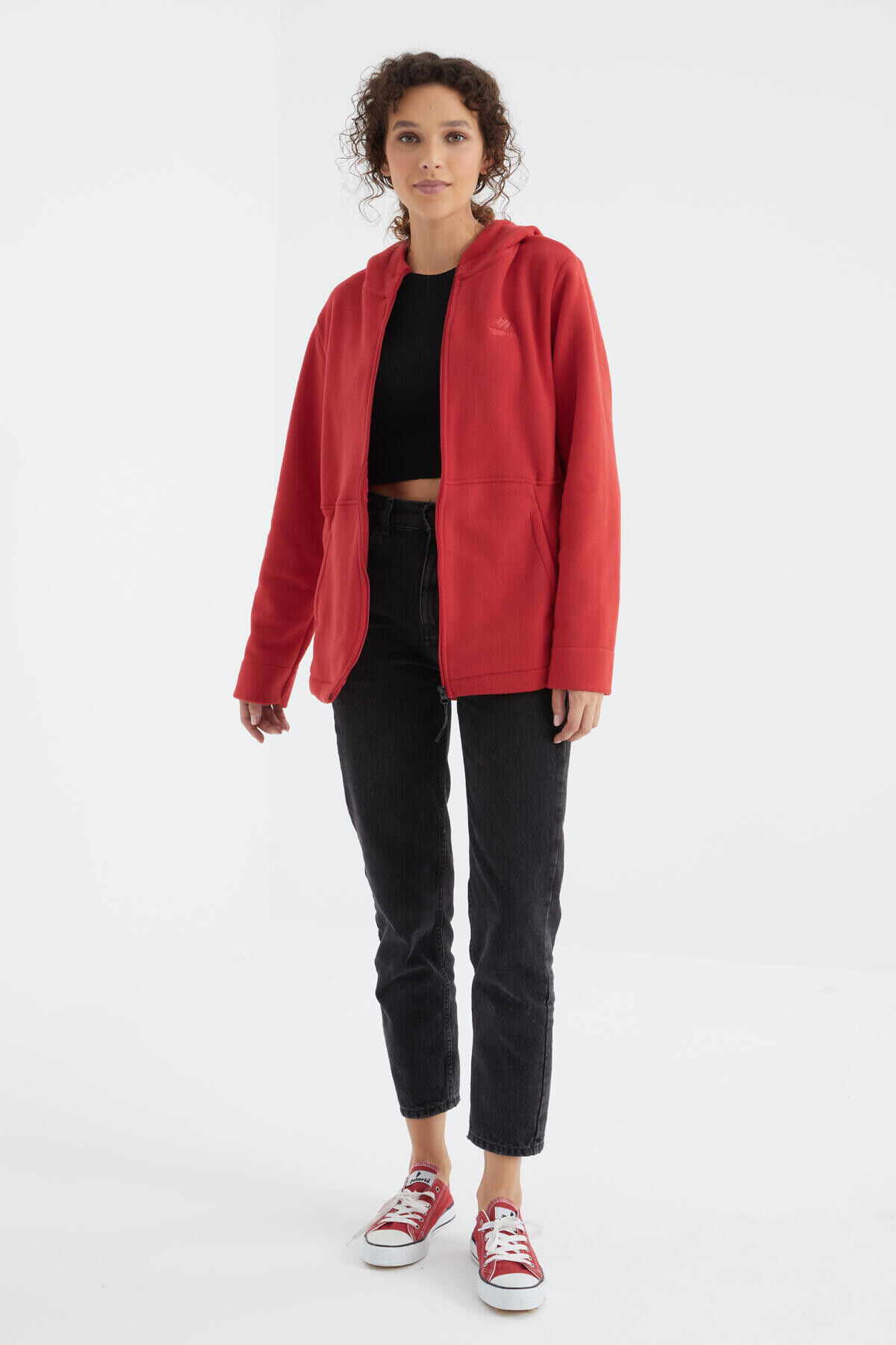 TommyLife Fiesta Kapüşonlu Fermuarlı Rahat Form Kadın Polar Sweatshirt - 97233