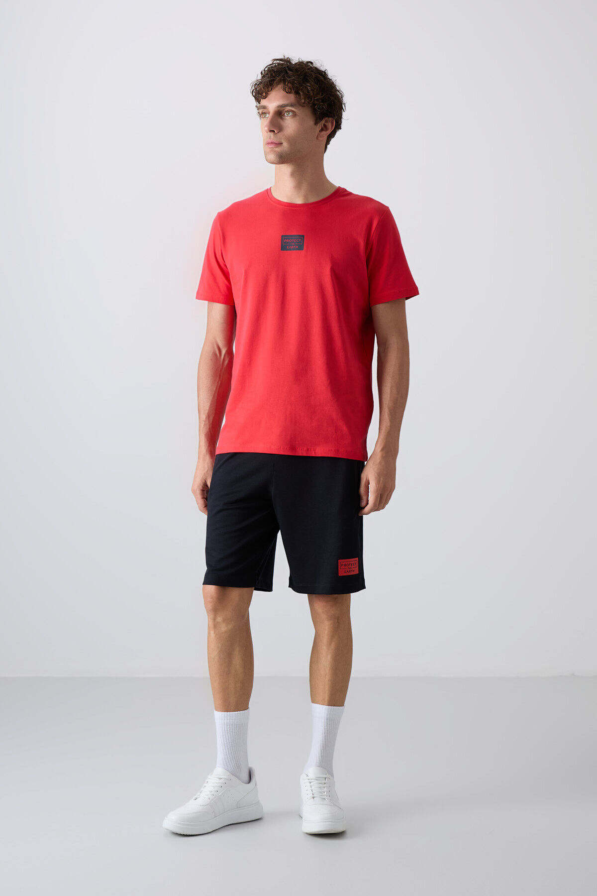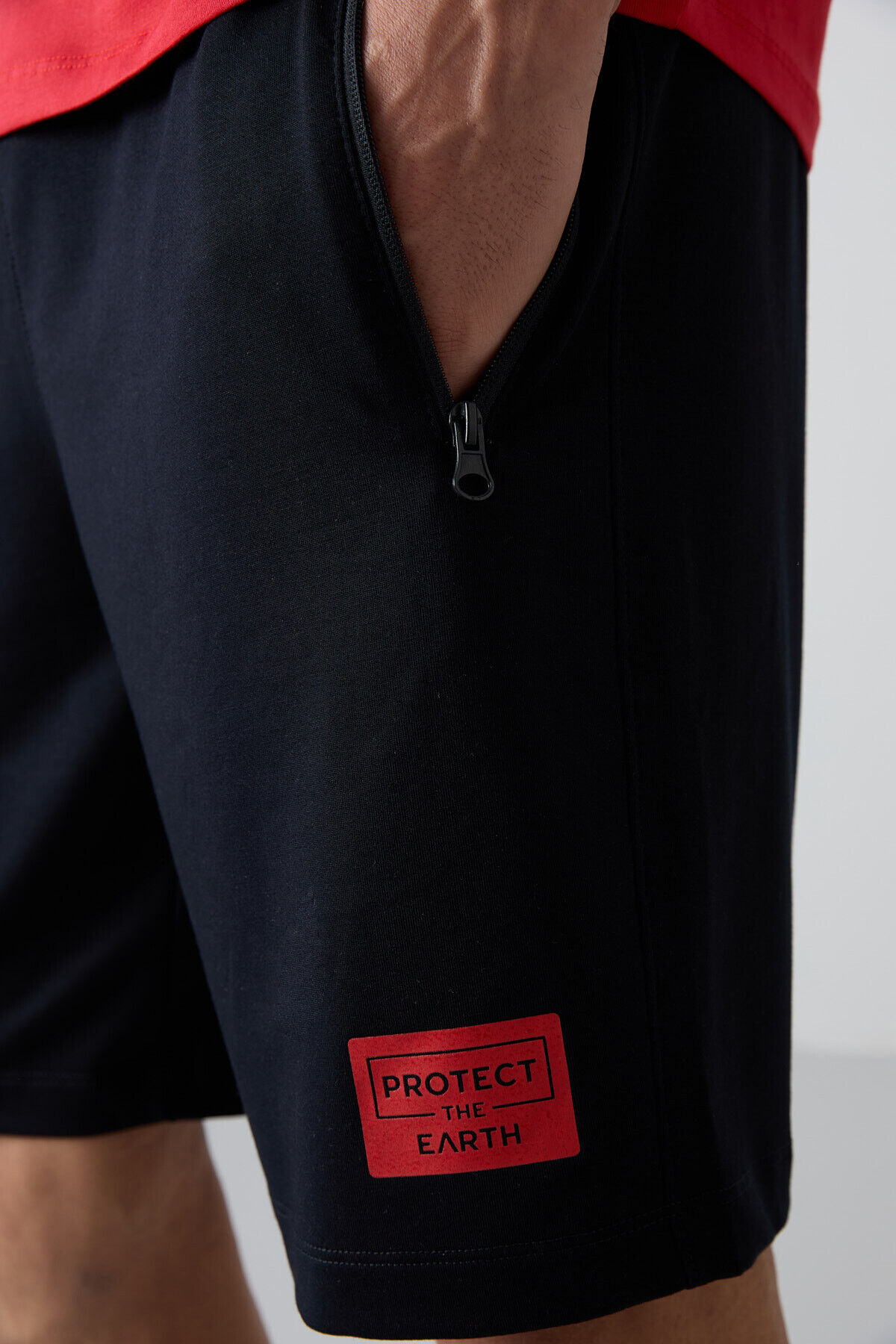 TommyLife Fiesta - Lacivert Pamuklu Yumuşak Dokulu Standart Fit Baskılı Erkek Şortlu Takım - 85243