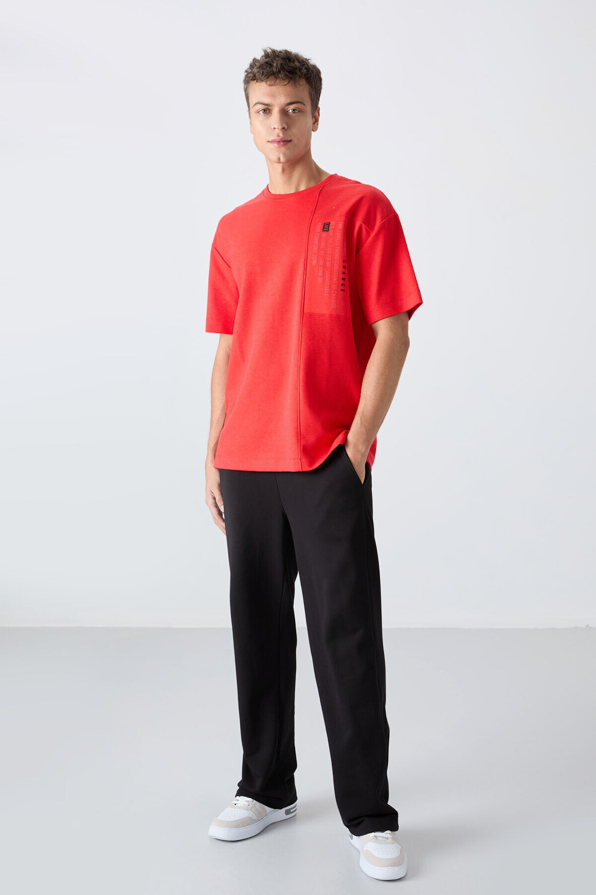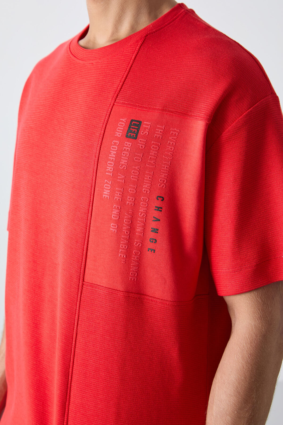 TommyLife Fiesta Pamuklu Kalın Yüzeyi Dokulu Oversize Fit Baskılı Erkek T-Shirt - 88338