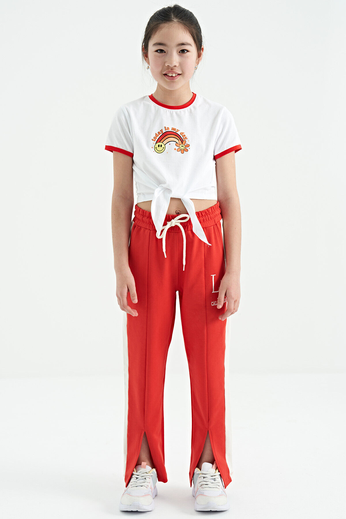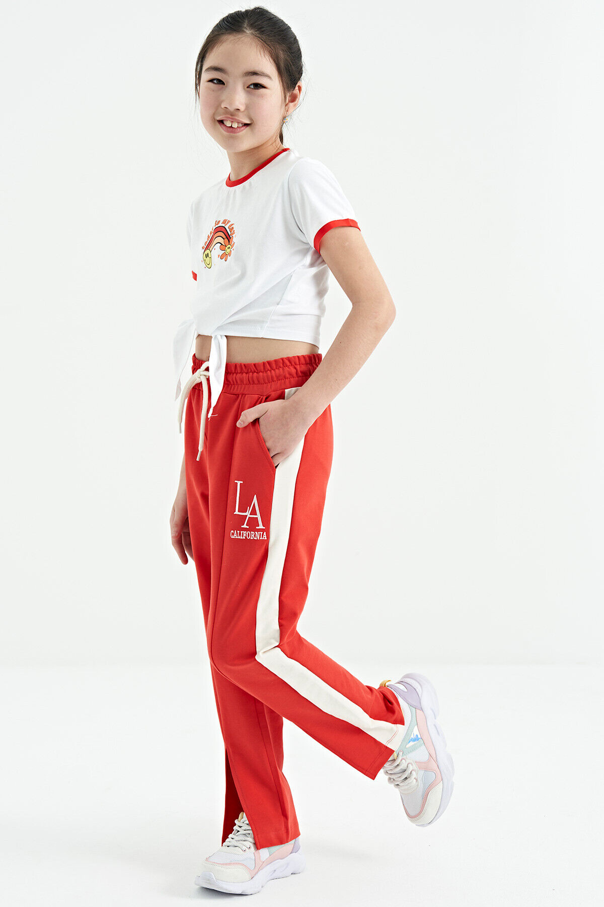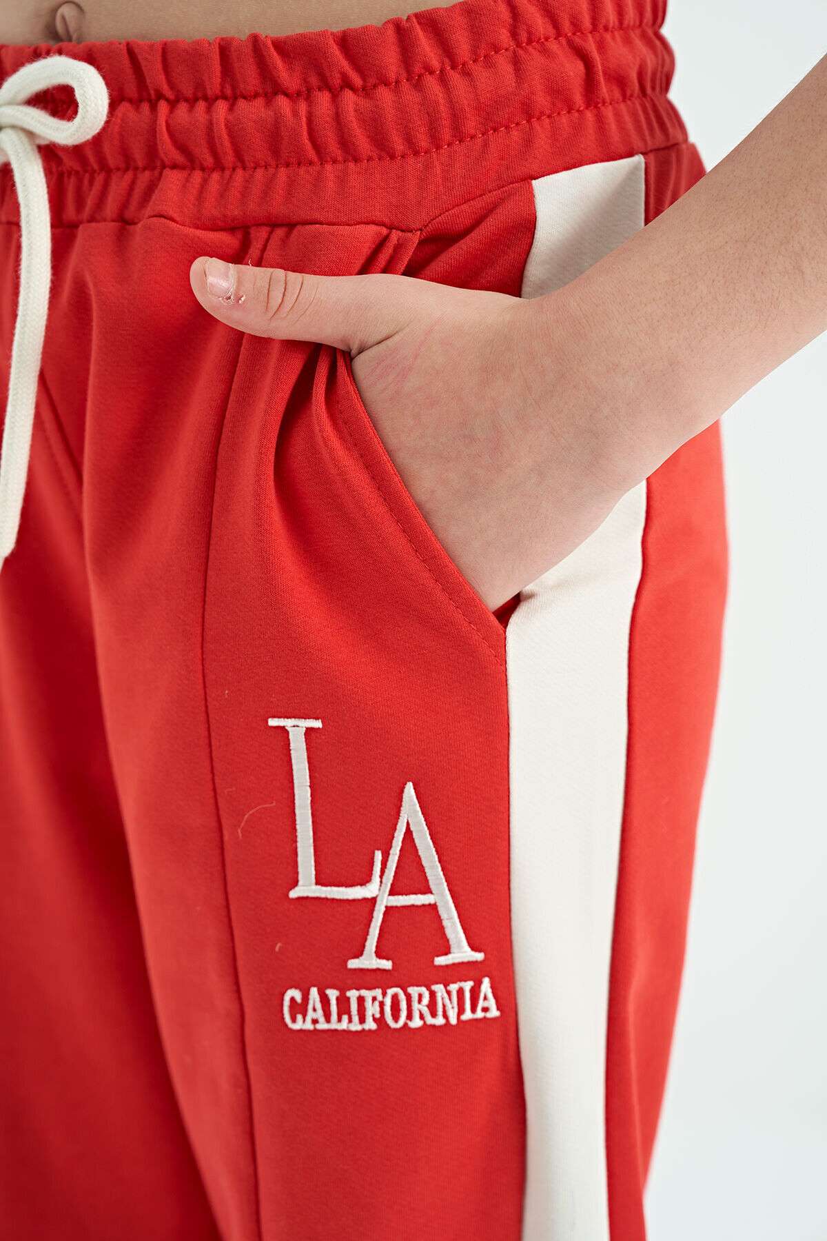 TommyLife Fiesta Yazı Nakış Detaylı Bağcıklı Rahat Kalıp Kız Çocuk Eşofman Alt - 75121