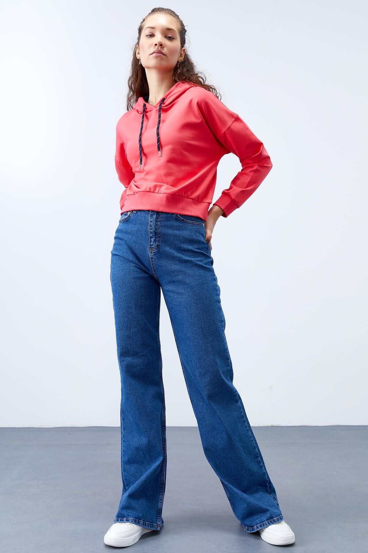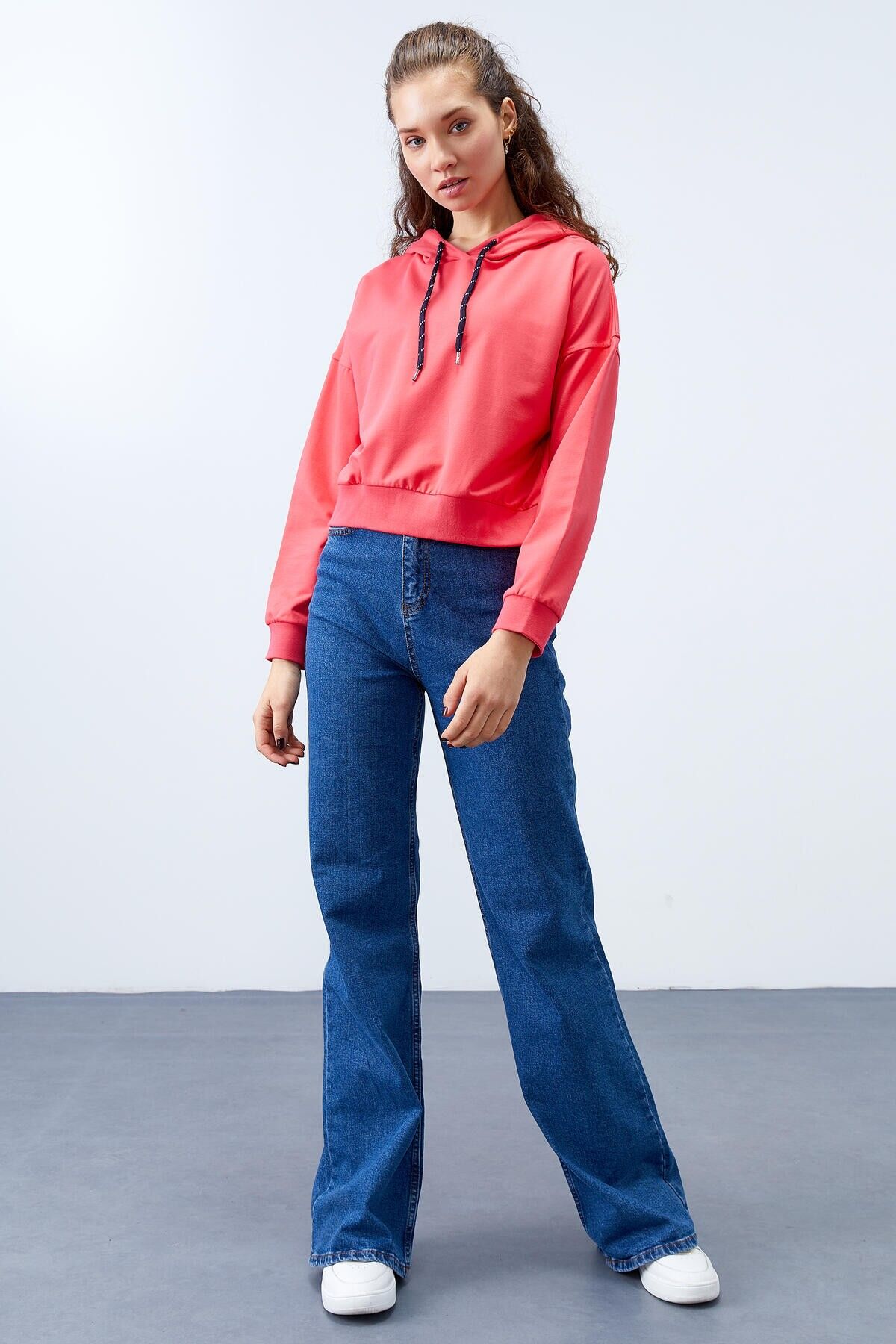 TommyLife Fuşya Uzun Kol Rahat Form Kapüşonlu Kadın Sweatshirt - 97115