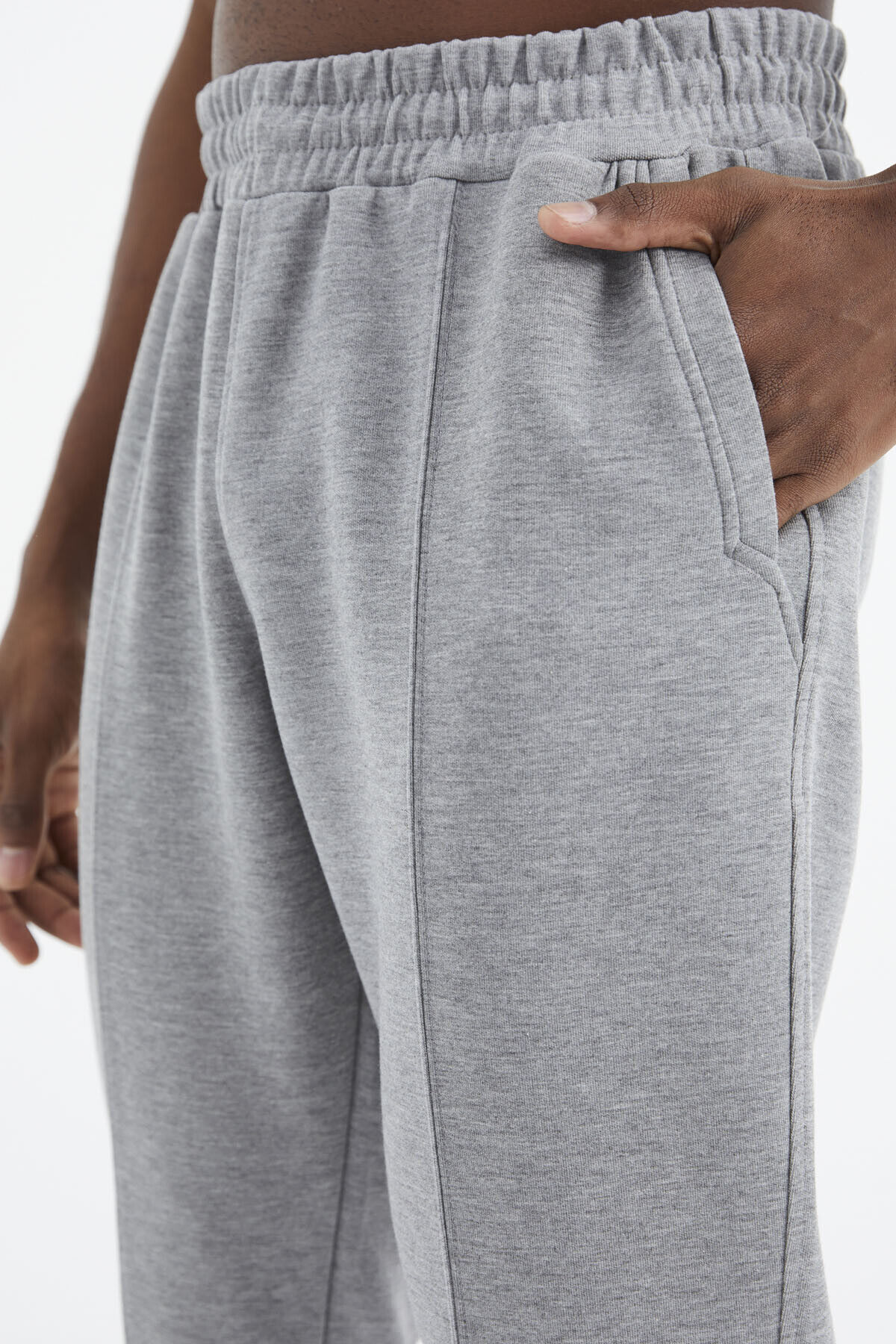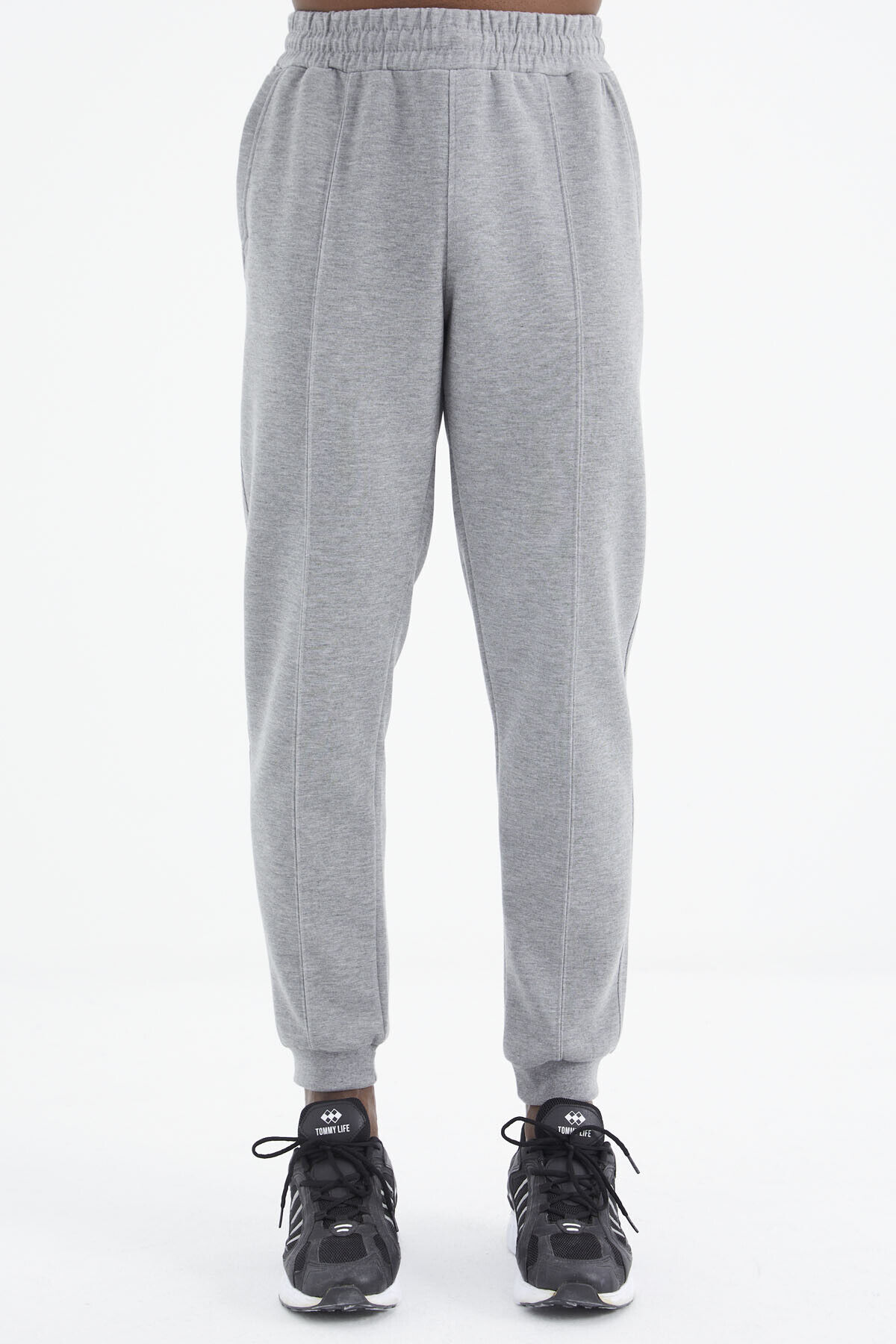 TommyLife Gri Melanj Bağcıklı Ön Dikiş Detaylı Standart Kalıp Erkek Eşofman Alt - 84994