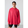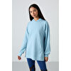 Gri Melanj Balon Kol Yazı Nakışlı Kadın Oversize Tunik Sweatshirt - 97163
