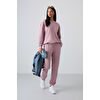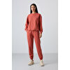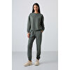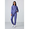 Gri Melanj Basic Pamuklu O Yaka Oversize Lastik Paça Kadın Eşofman Takım - 95287
