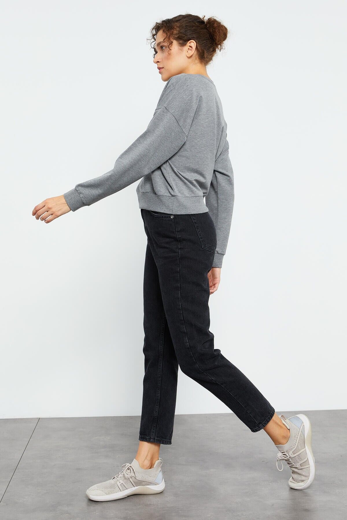 TommyLife Gri Melanj Basic Rahat Form O Yaka Kadın Sweatshirt - 97114
