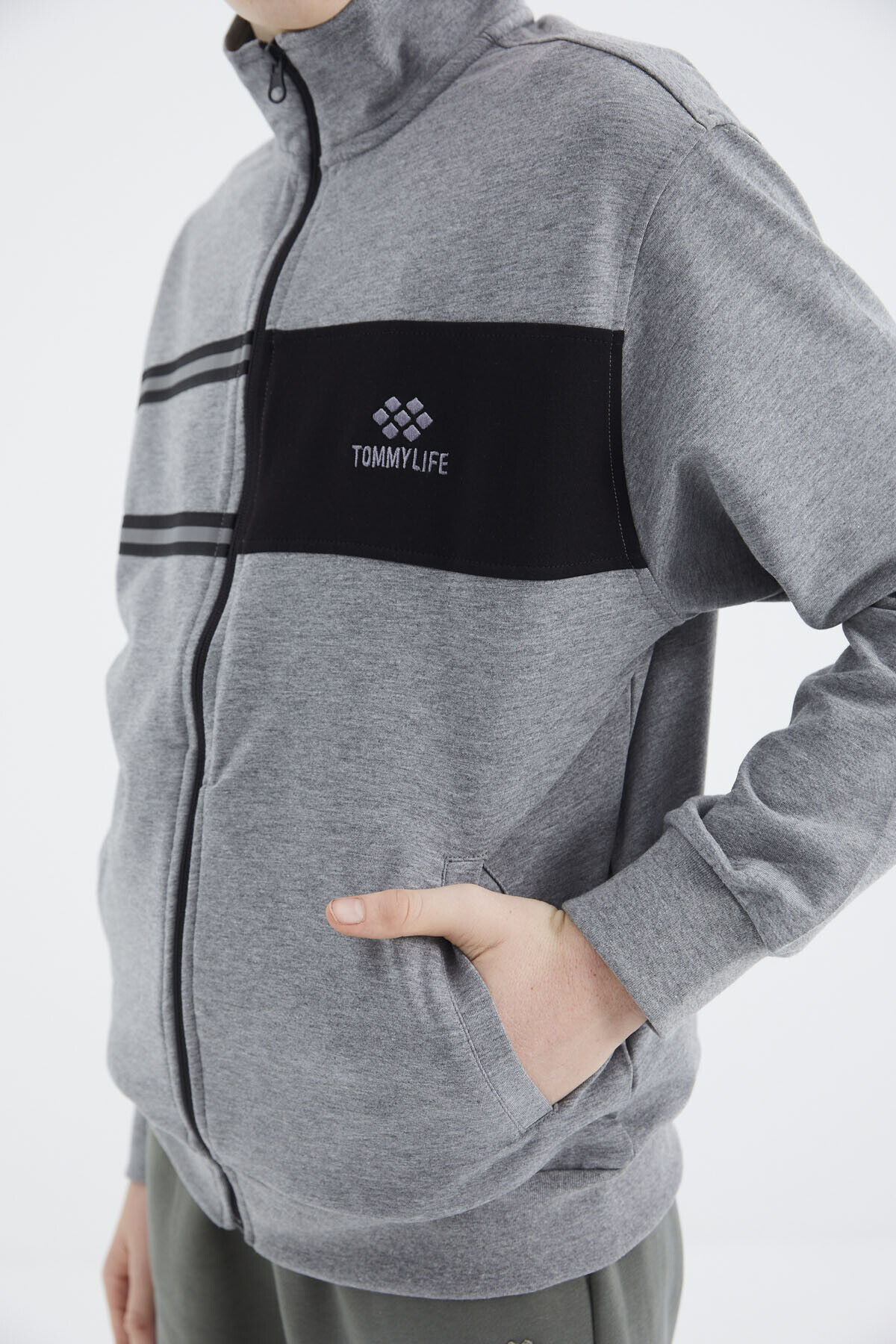 TommyLife Gri Melanj Dik Yaka Erkek Çocuk Sweatshirt - 11183