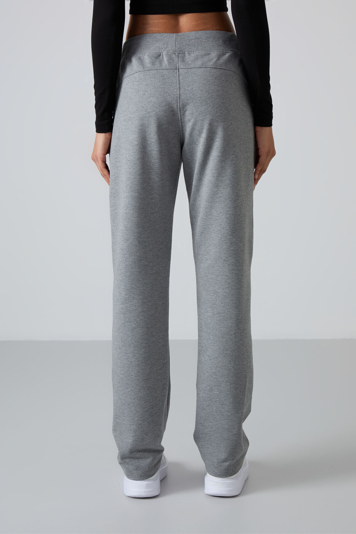 TommyLife Gri Melanj Fermuar Cepli Rahat Form Klasik Paça Kadın Eşofman Alt - 94195