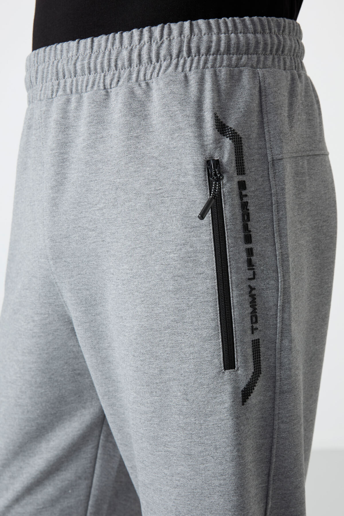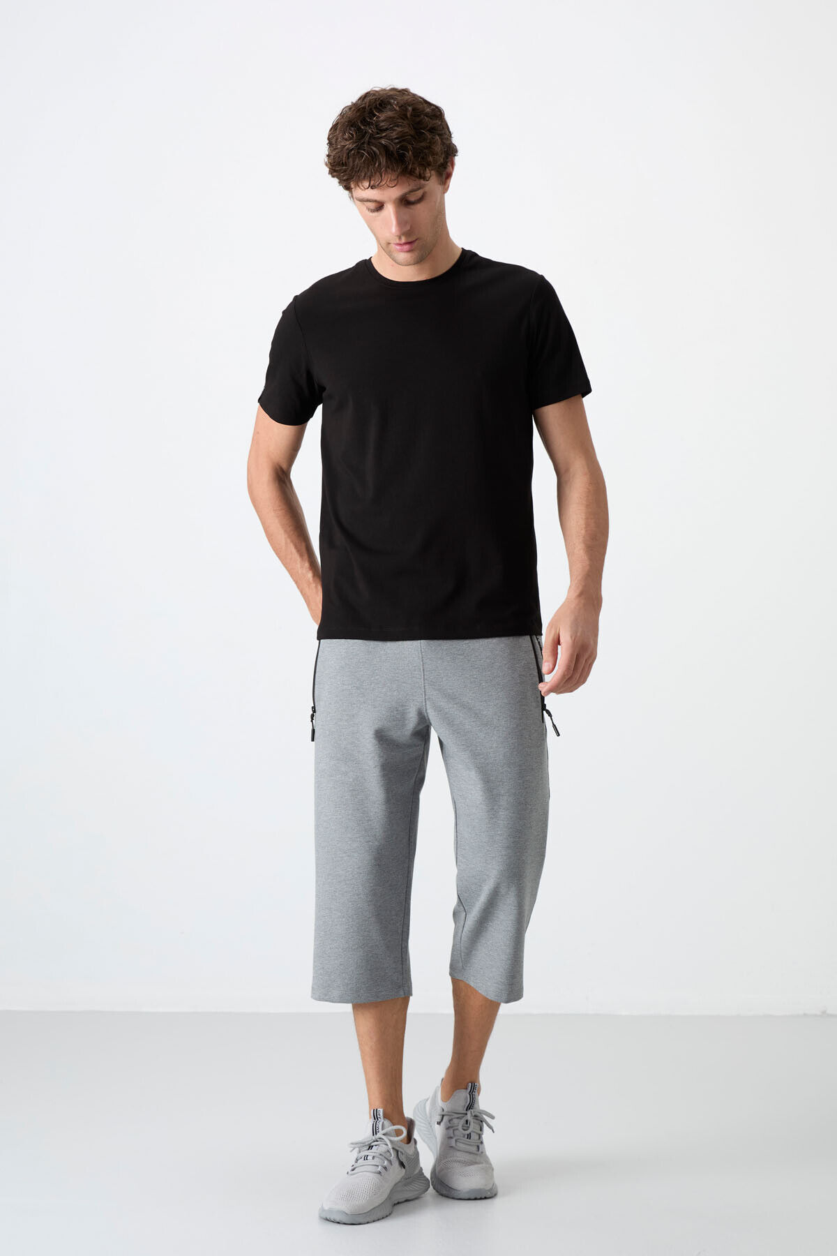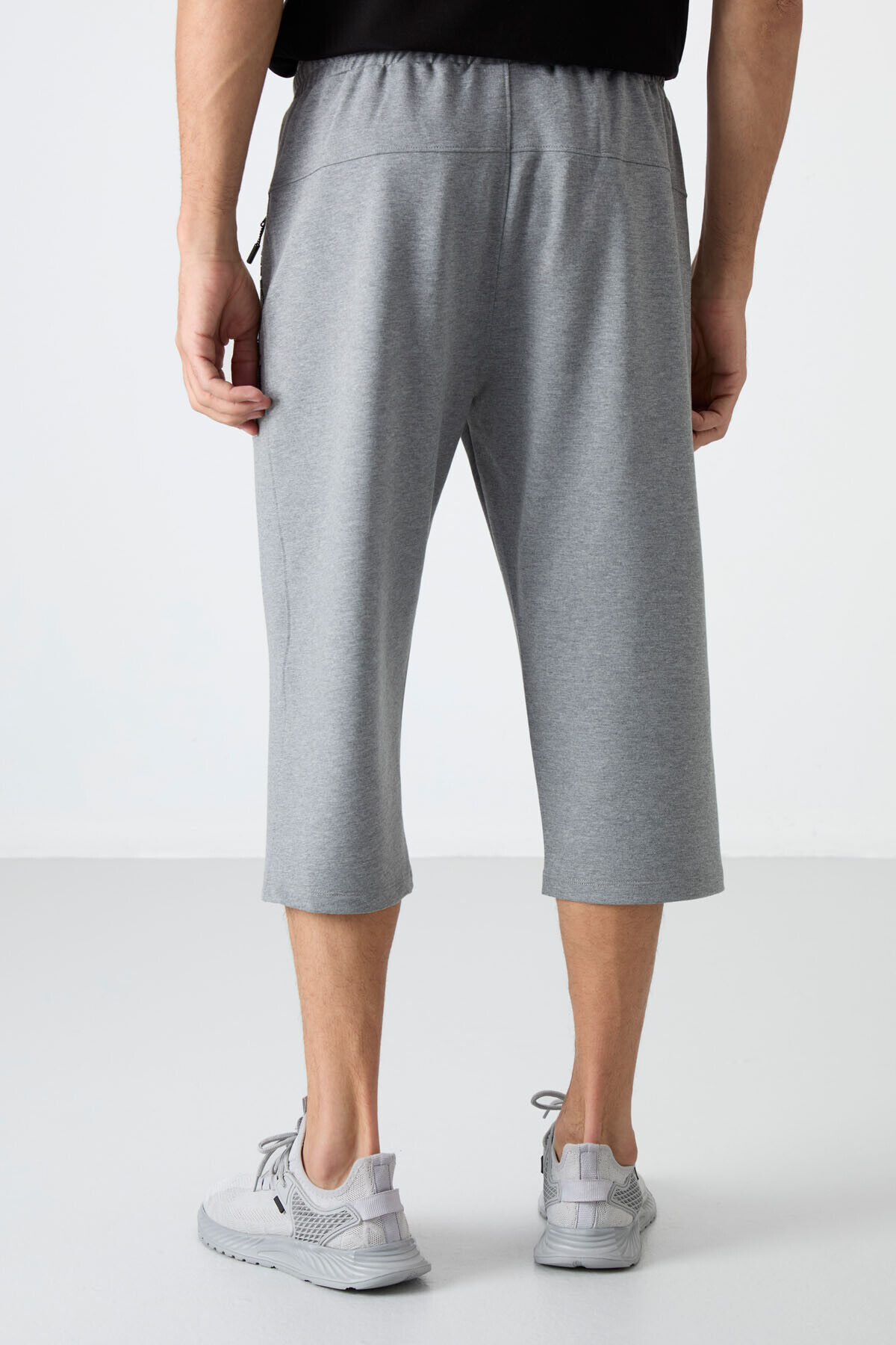 TommyLife Gri Melanj Fermuar Cepli Standart Kalıp Klasik Paça Erkek Kapri - 83091