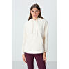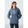 Gri Melanj Kalın Yumuşak Dokulu Kapüşonlu Oversize Nakışlı Polar Kadın Sweatshirt - 97292