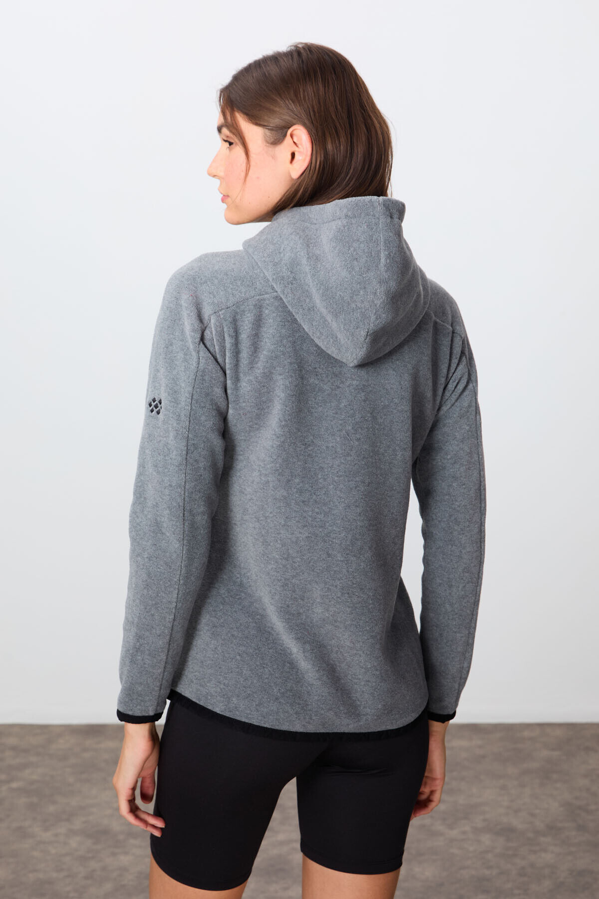 TommyLife Gri Melanj Kalın Yumuşak Dokulu Kapüşonlu Standart Fit Nakışlı Polar Kadın Sweatshirt -97287