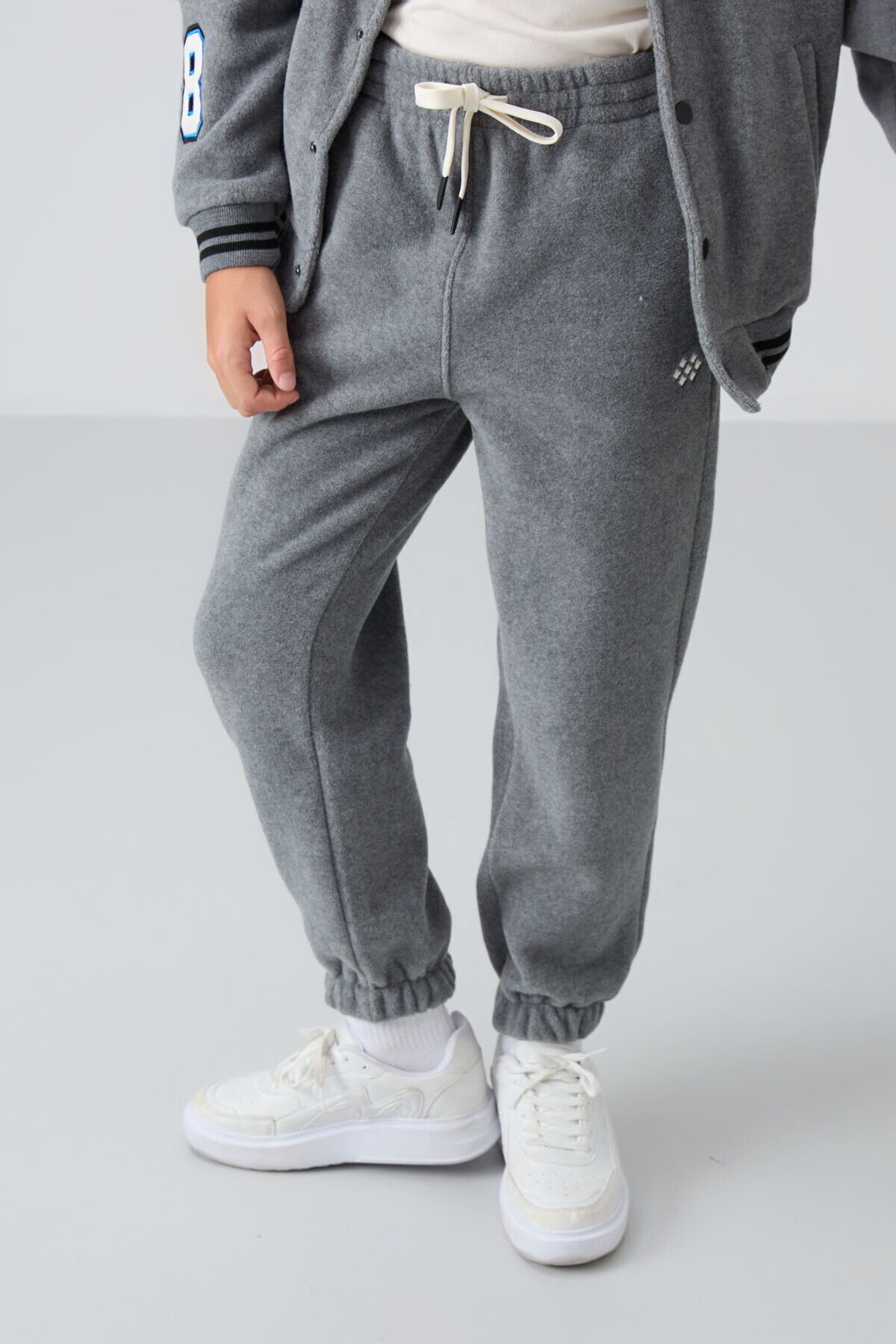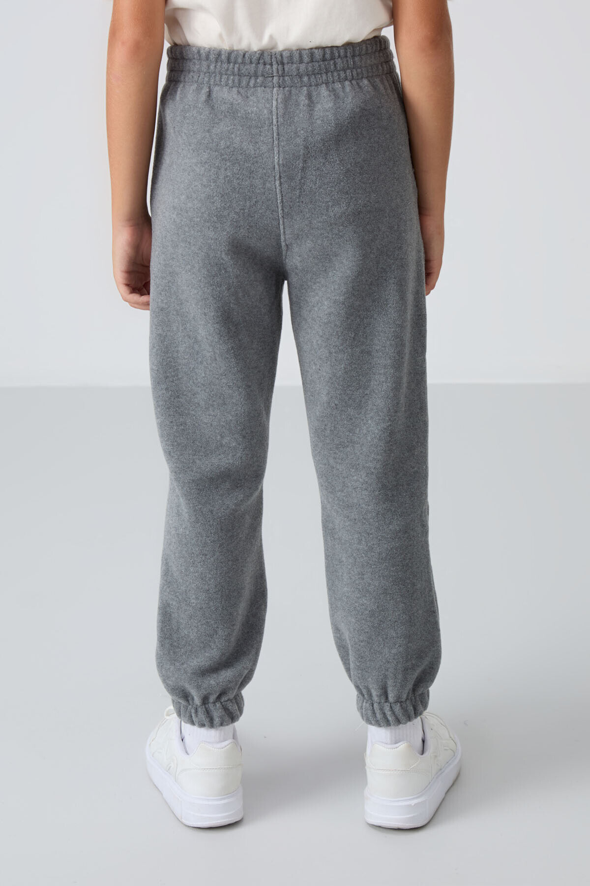 TommyLife Gri Melanj Kalın Yumuşak Dokulu Standart Fit Nakışlı Polar Erkek Çocuk Eşofman Alt - 11220