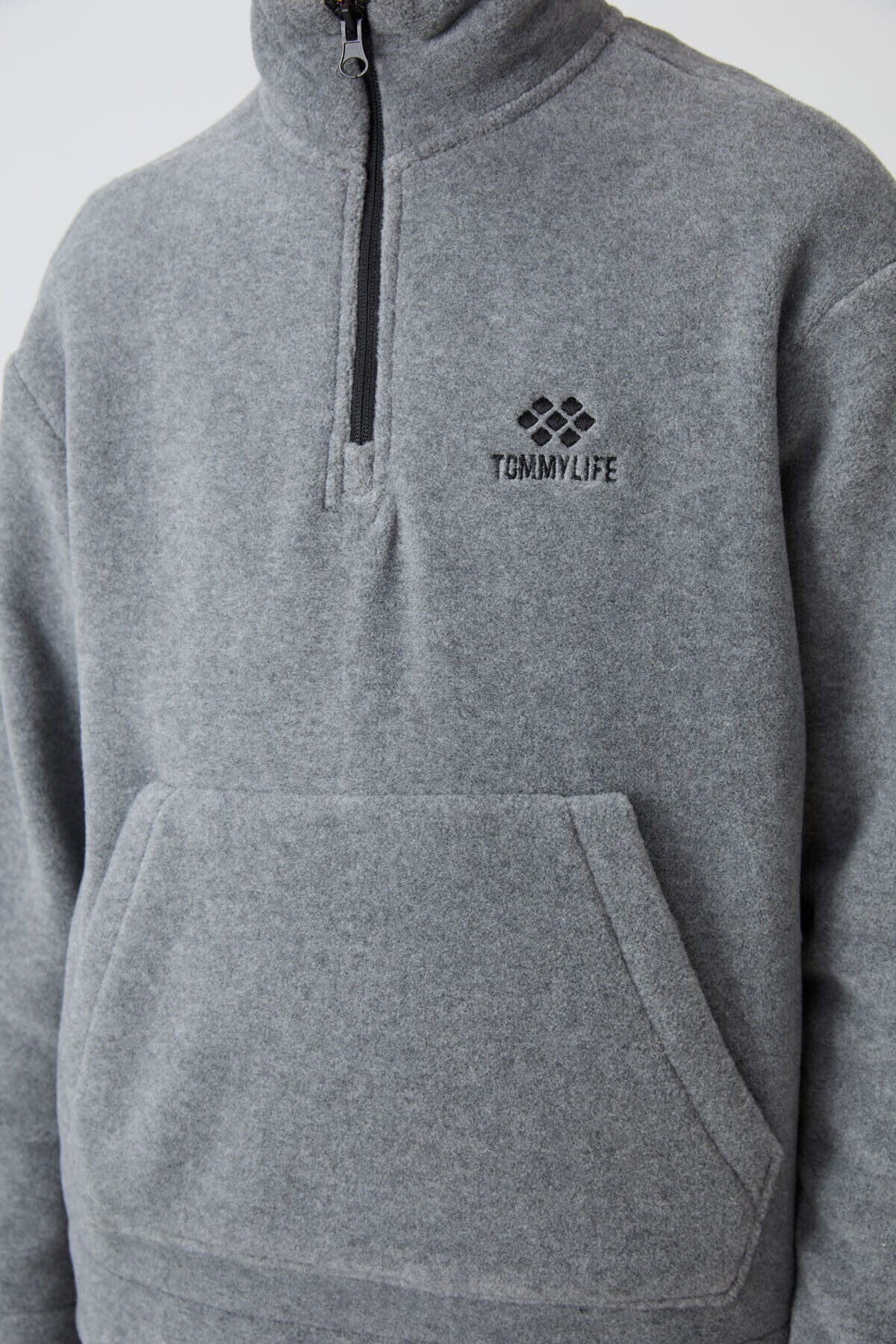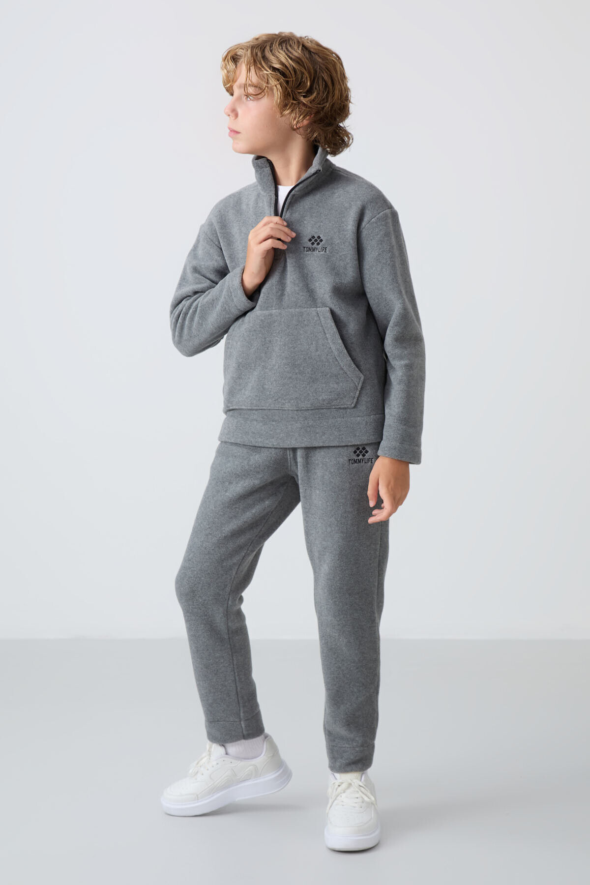 TommyLife Gri Melanj Kalın Yumuşak Dokulu Standart Fit Nakışlı Polar Erkek Çocuk Eşofman Takım - 11218