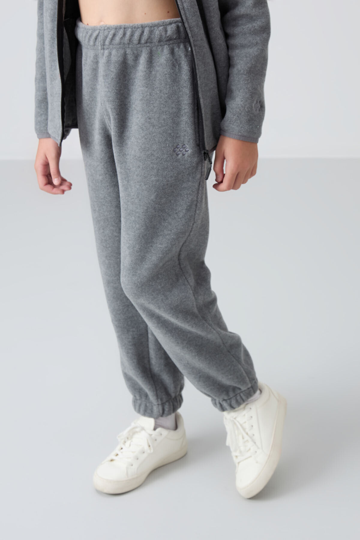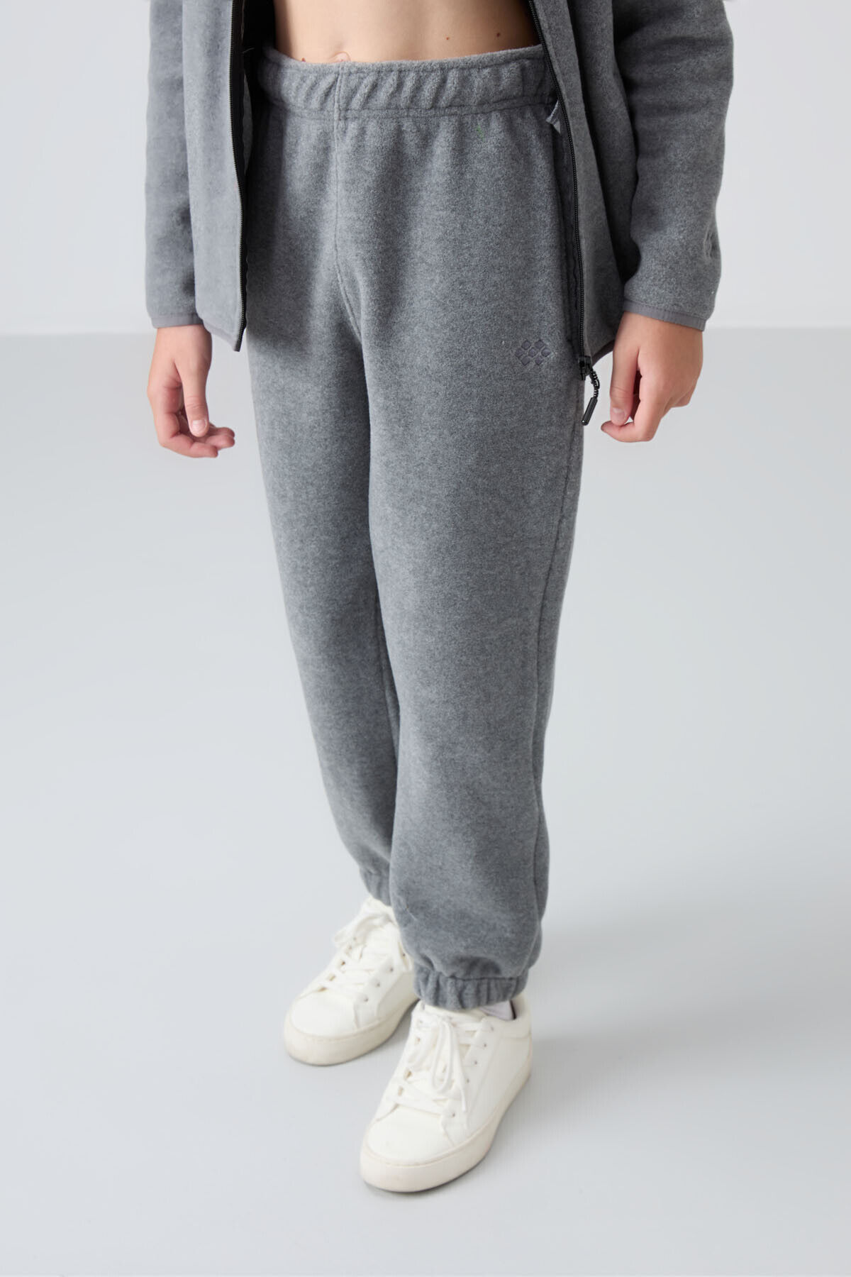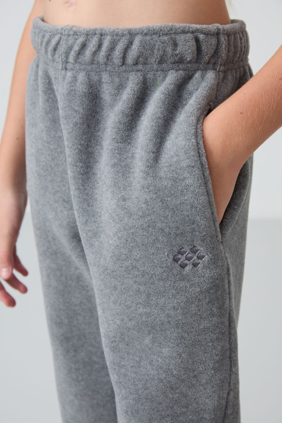 TommyLife Gri Melanj Kalın Yumuşak Dokulu Standart Fit Nakışlı Polar Kız Çocuk Eşofman Alt - 75155