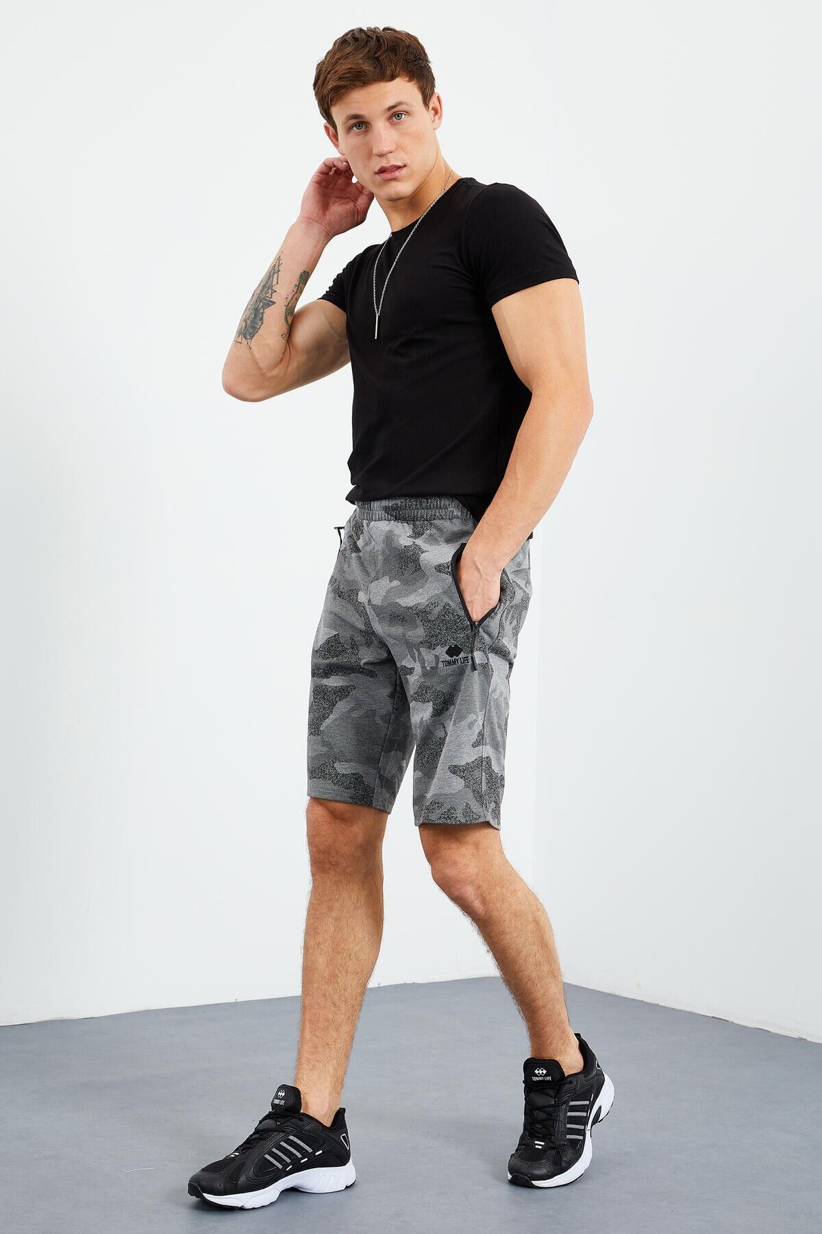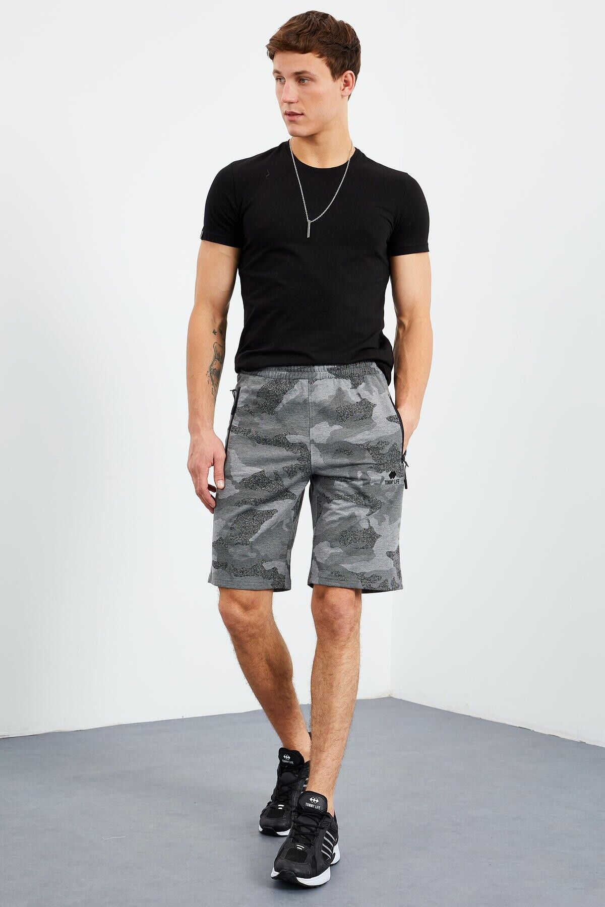 Gri Melanj Kamuflaj Desenli Standart Kalıp Erkek Şort - 81157