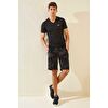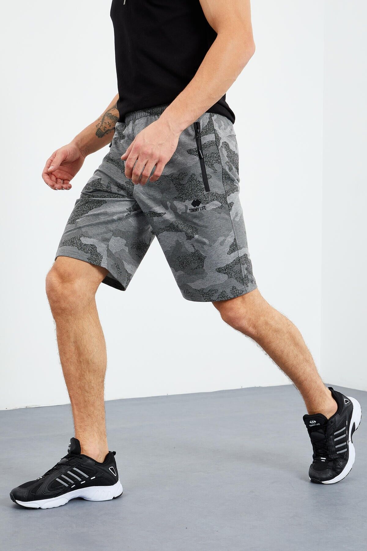 TommyLife Gri Melanj Kamuflaj Desenli Standart Kalıp Erkek Şort - 81157