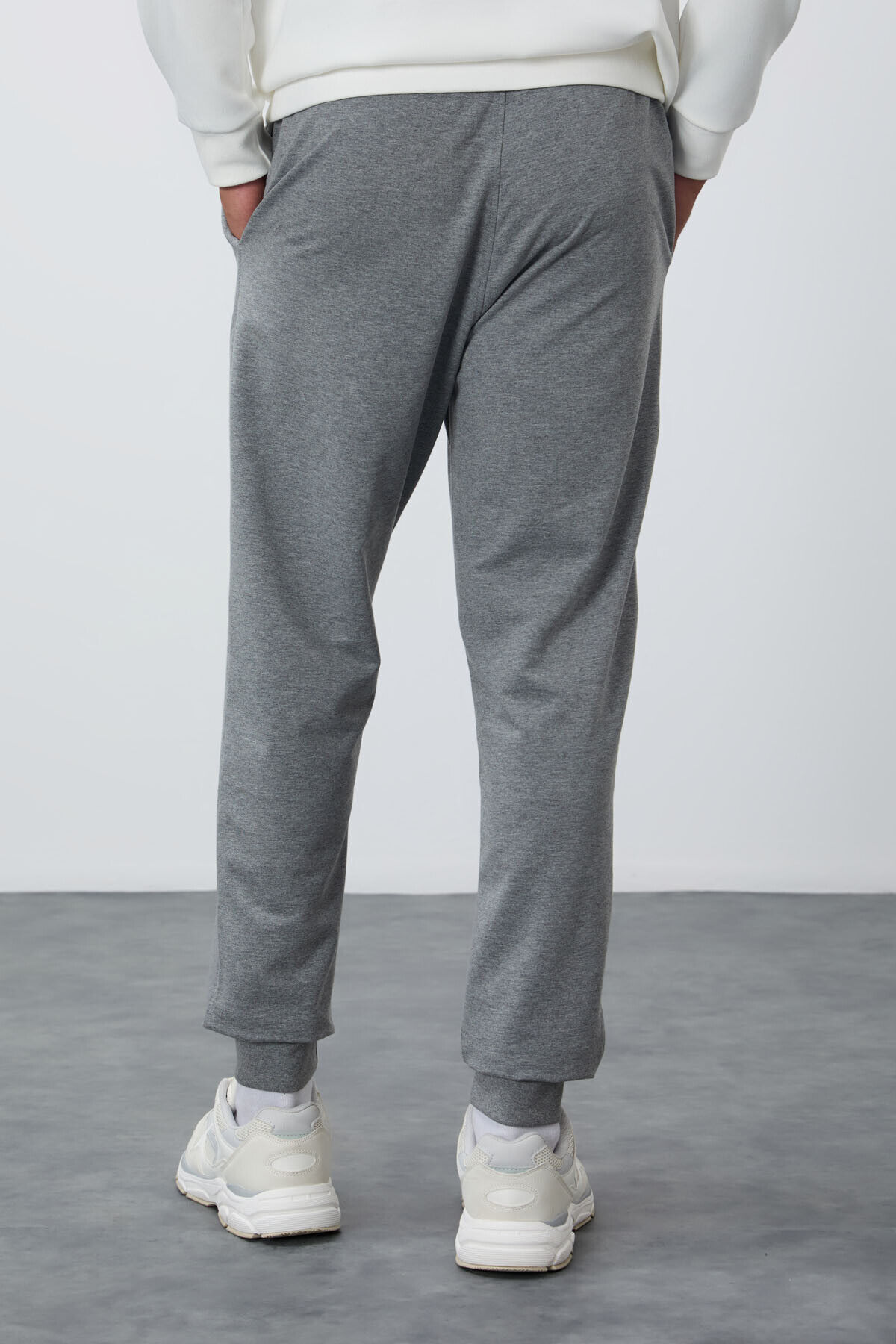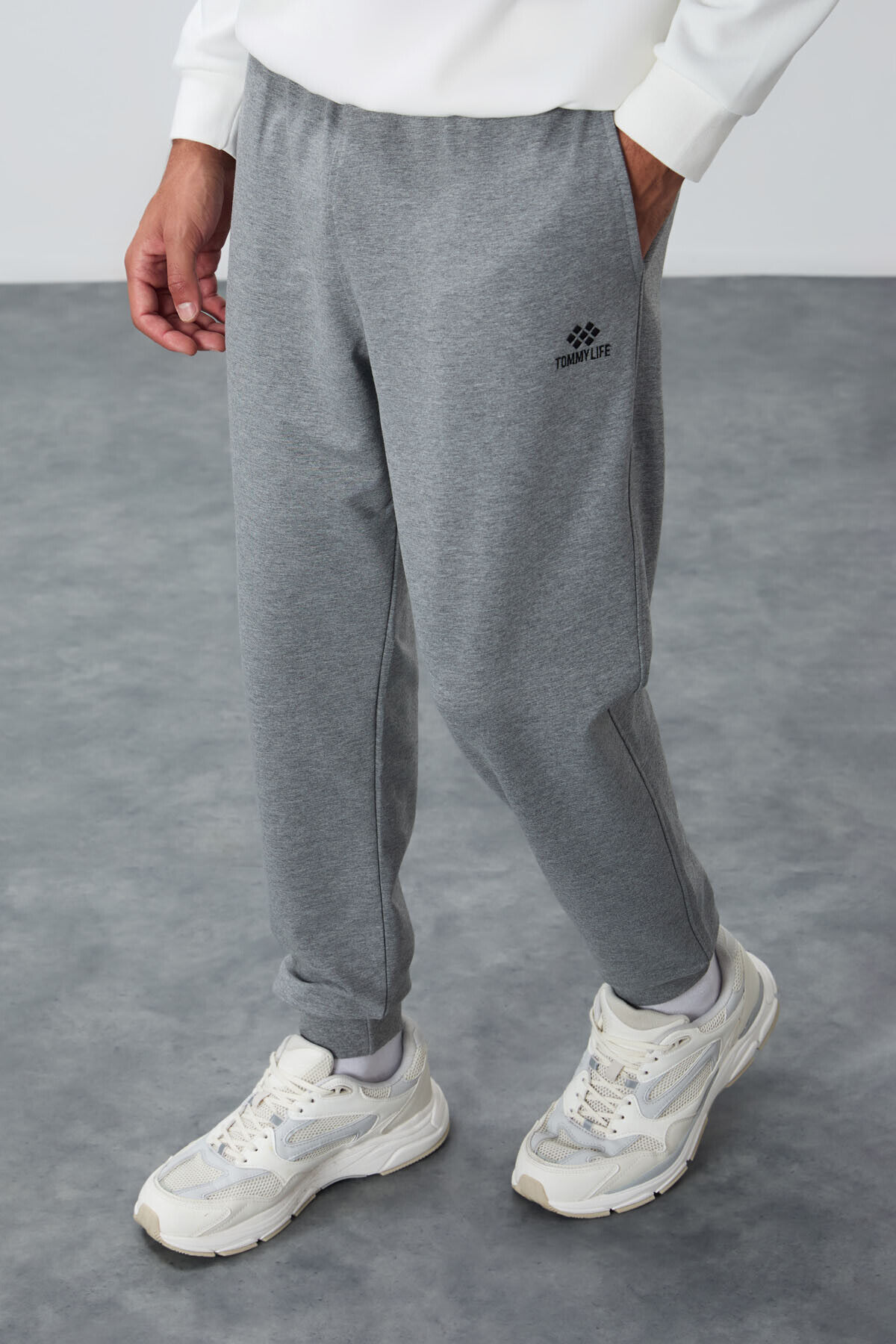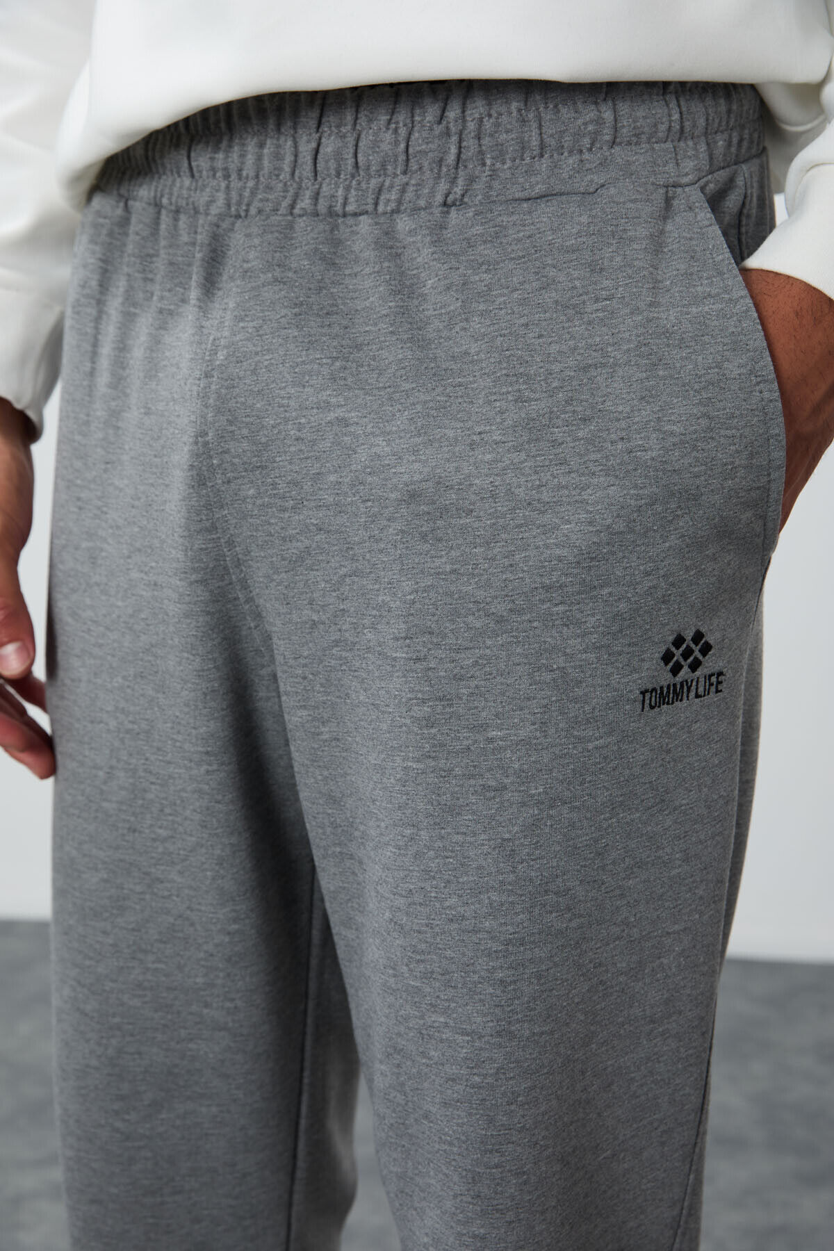 TommyLife Gri Melanj Klasik Cepli Standart Kalıp Manşetli Erkek Eşofman Alt - 84652