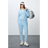Gri Melanj Kompakt Pamuklu Kalın Pürüzsüz Dokulu Dik Yaka Oversize Fit Kadın Eşofman Takım - 95340