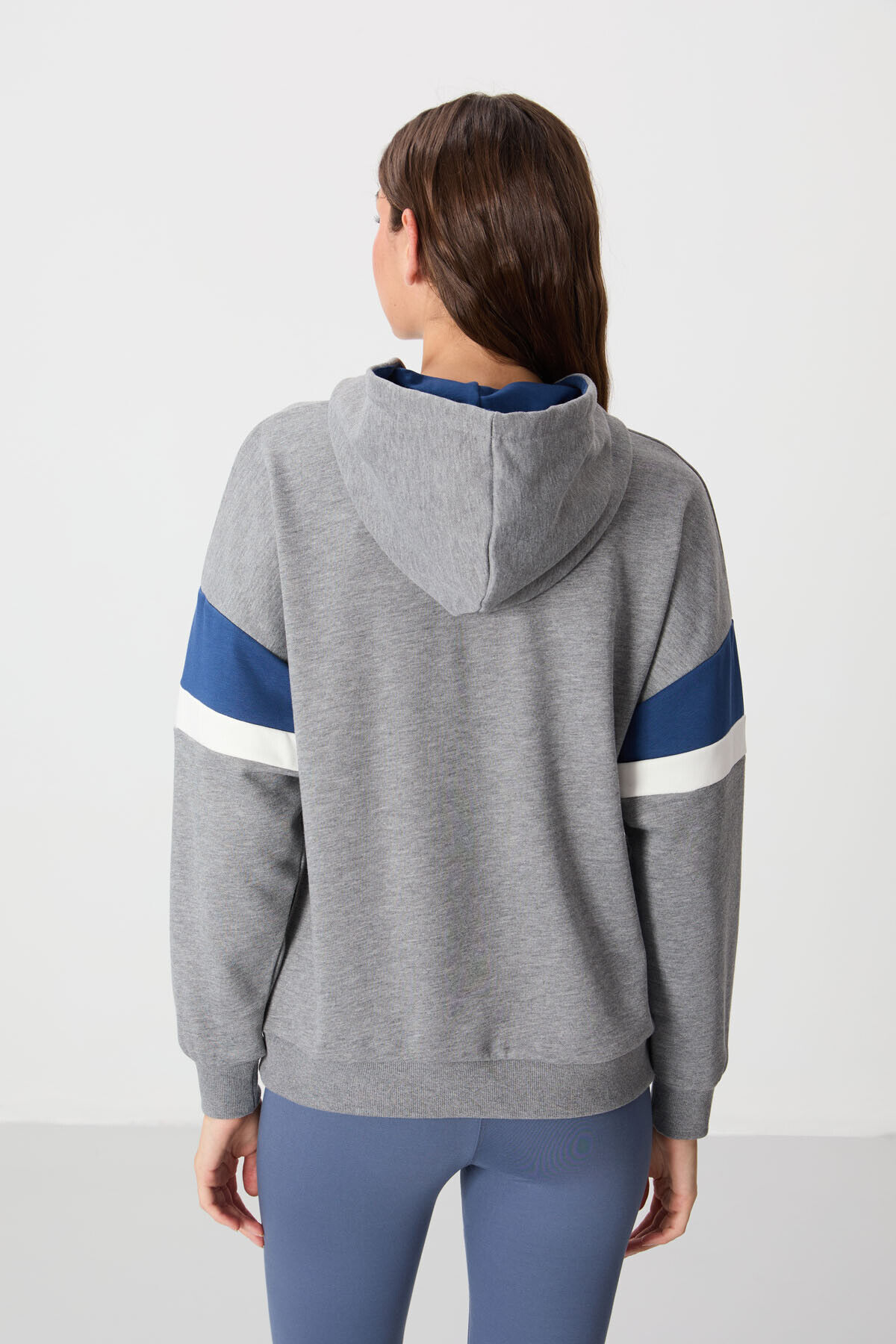 TommyLife Gri Melanj Kompakt Pamuklu Kalın Pürüzsüz Dokulu Kapüşonlu Oversize Fit Kadın Sweatshirt - 97290