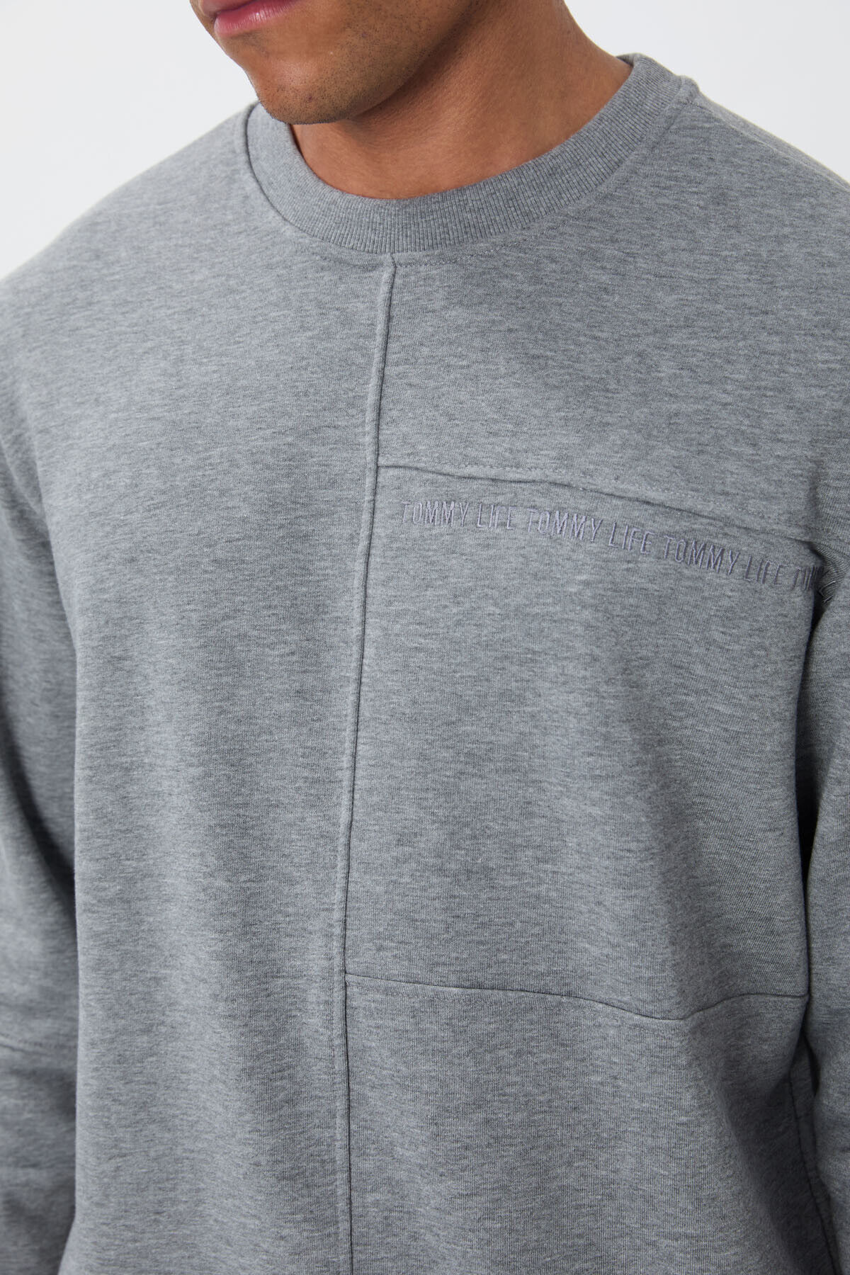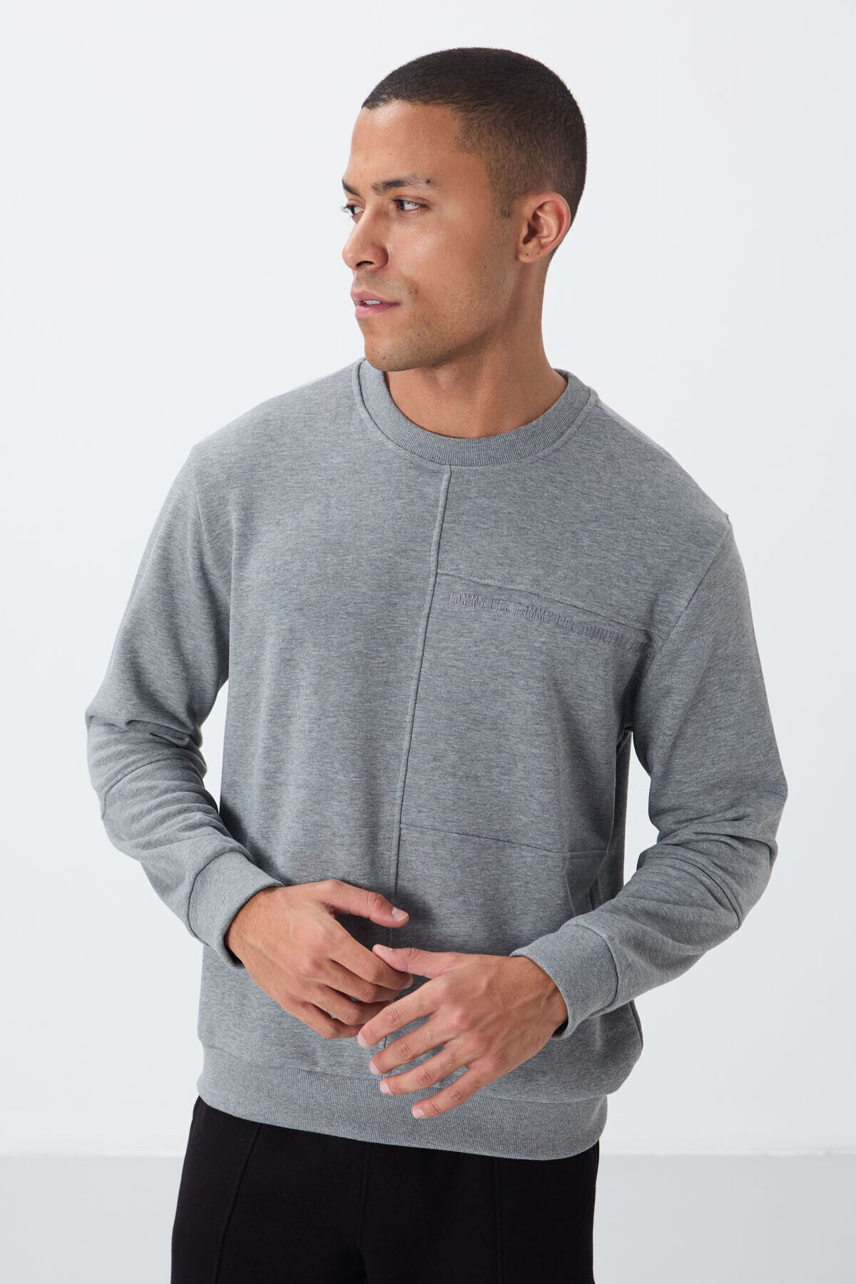 Gri Melanj Kompakt Pamuklu Kalın Pürüzsüz Dokulu O Yaka Standart Fit Erkek Sweatshirt -88405