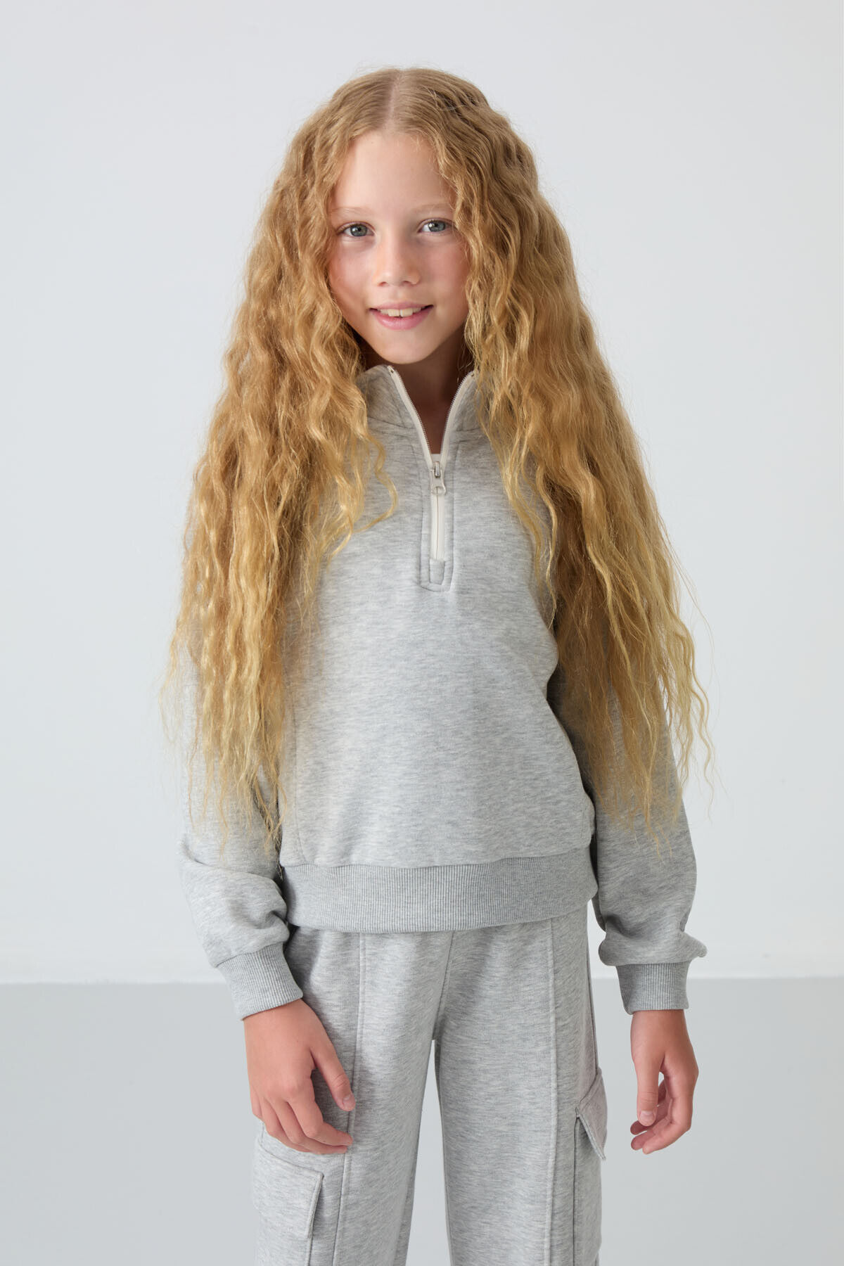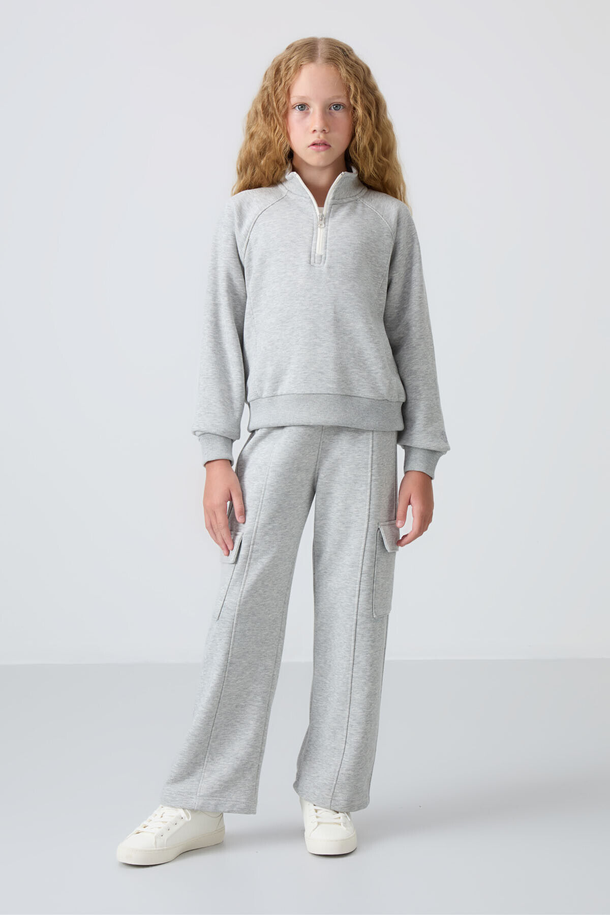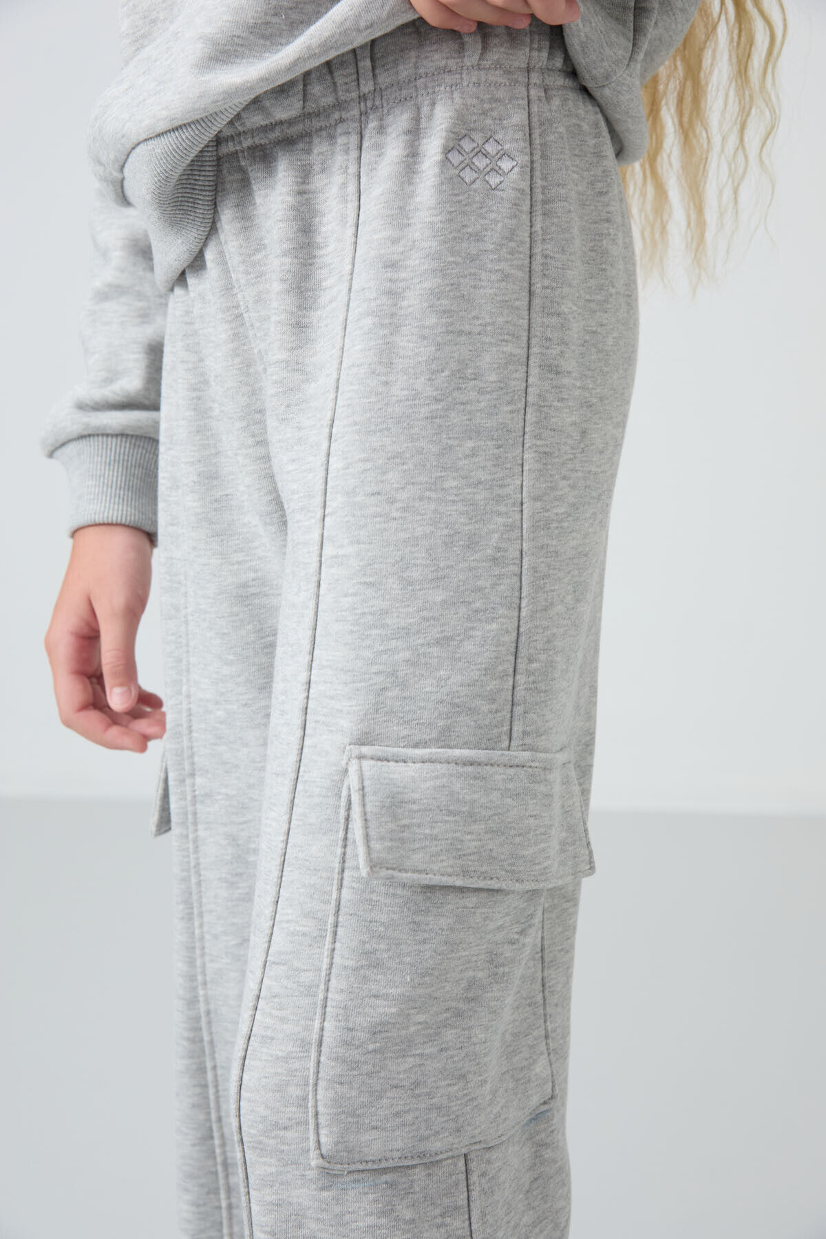 TommyLife Gri Melanj Pamuklu İçi Tüylü Yumuşak Dokulu Standart Fit Nakışlı Kız Çocuk Eşofman Takım - 75159