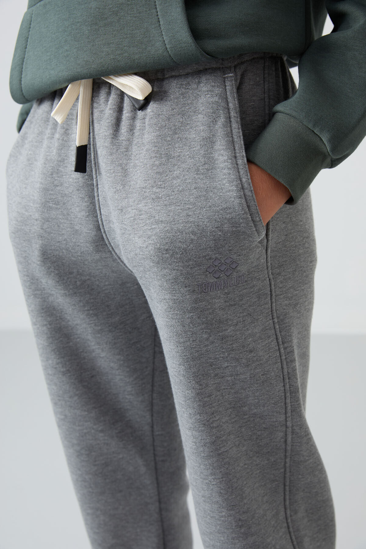 TommyLife Gri Melanj Pamuklu Kalın İçi Tüylü Standart Fit Baskılı Erkek Çocuk Eşofman Alt - 11225