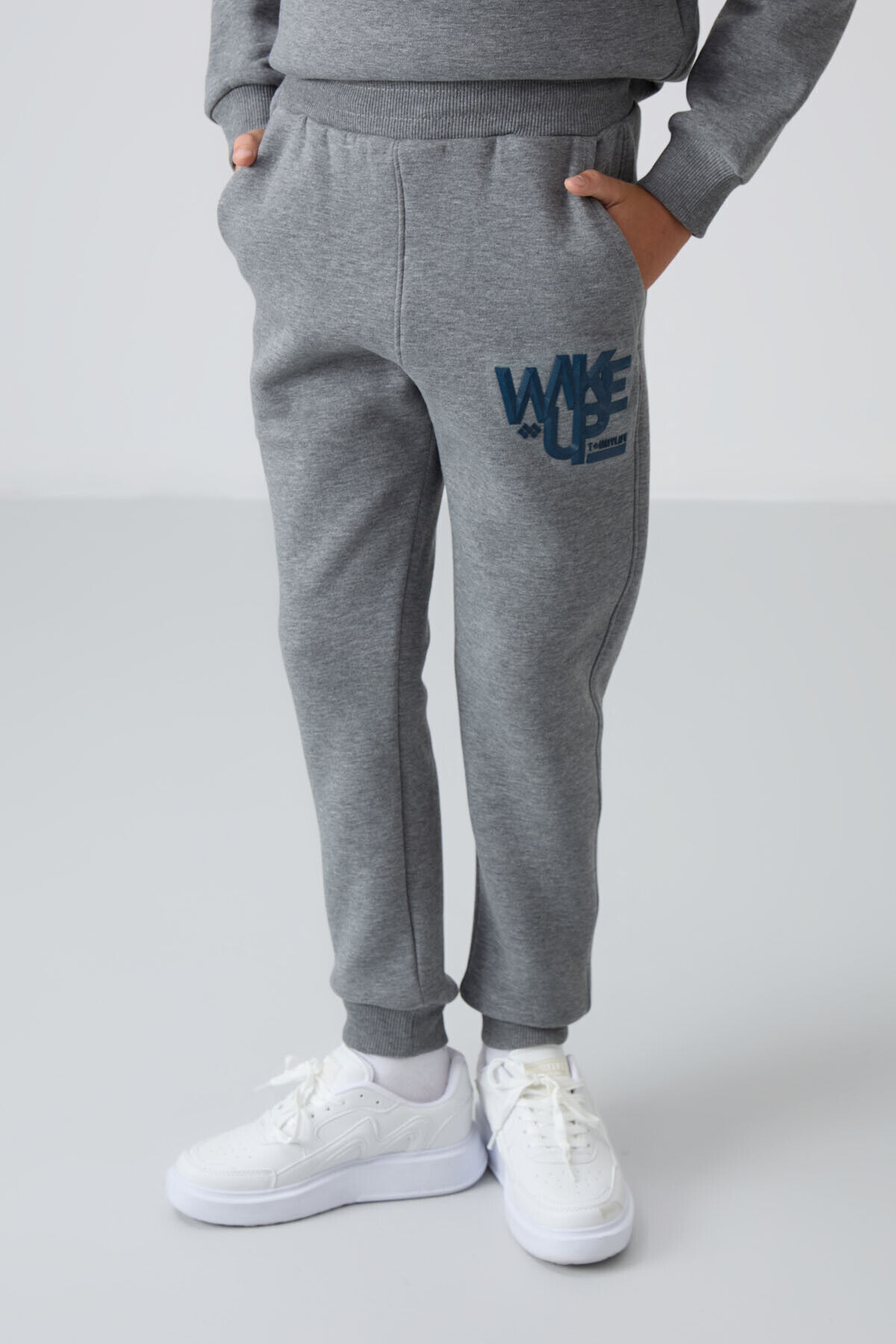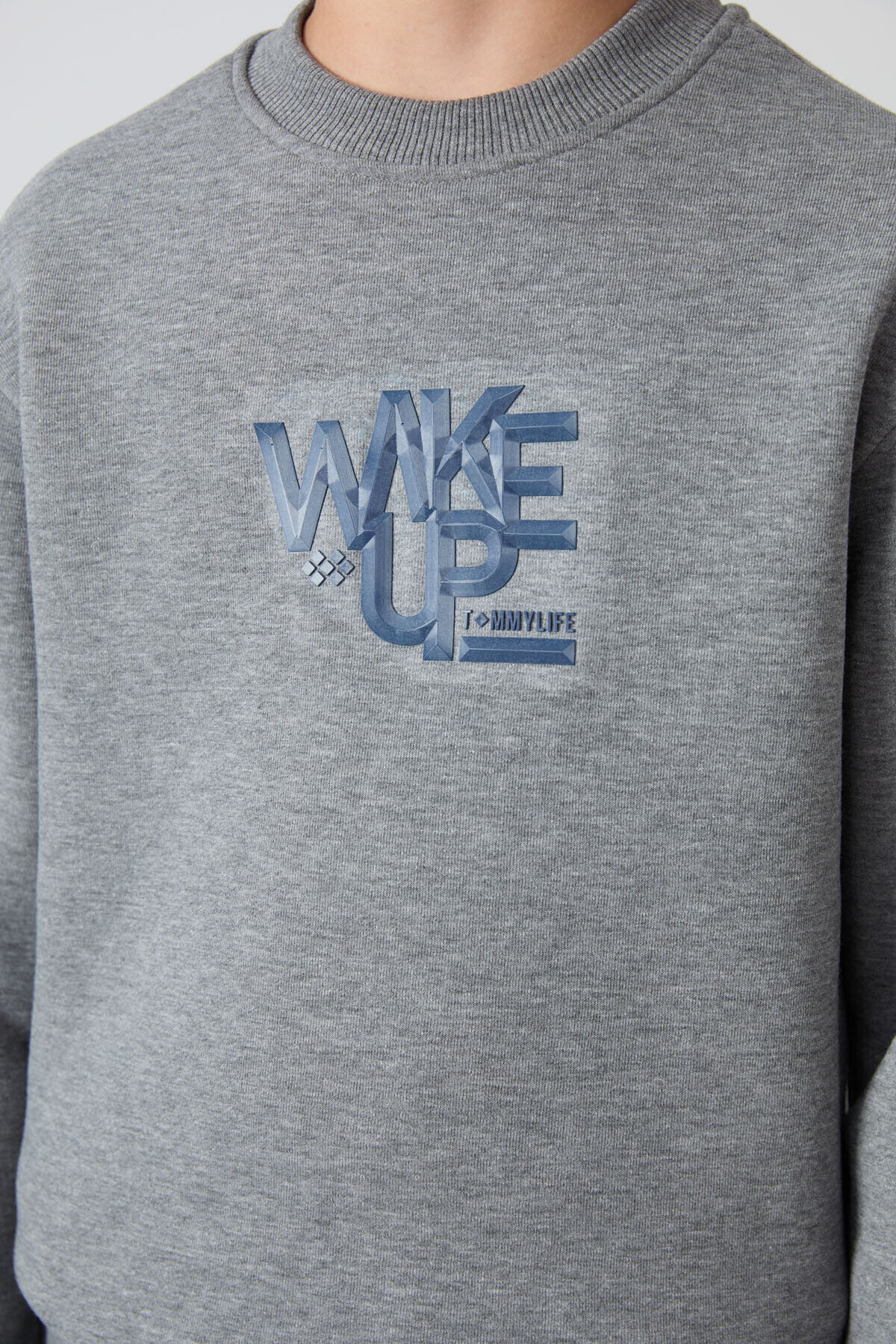TommyLife Gri Melanj Pamuklu Kalın İçi Tüylü Standart Fit Baskılı Erkek Çocuk Eşofman Takım - 11253