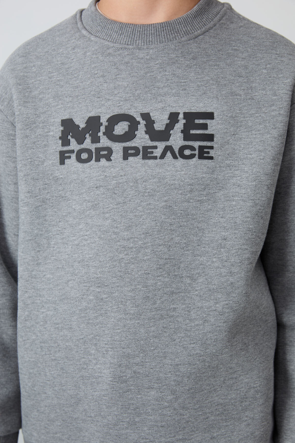 Gri Melanj Pamuklu Kalın İçi Tüylü Standart Fit Baskılı Erkek Çocuk Sweatshirt - 11216