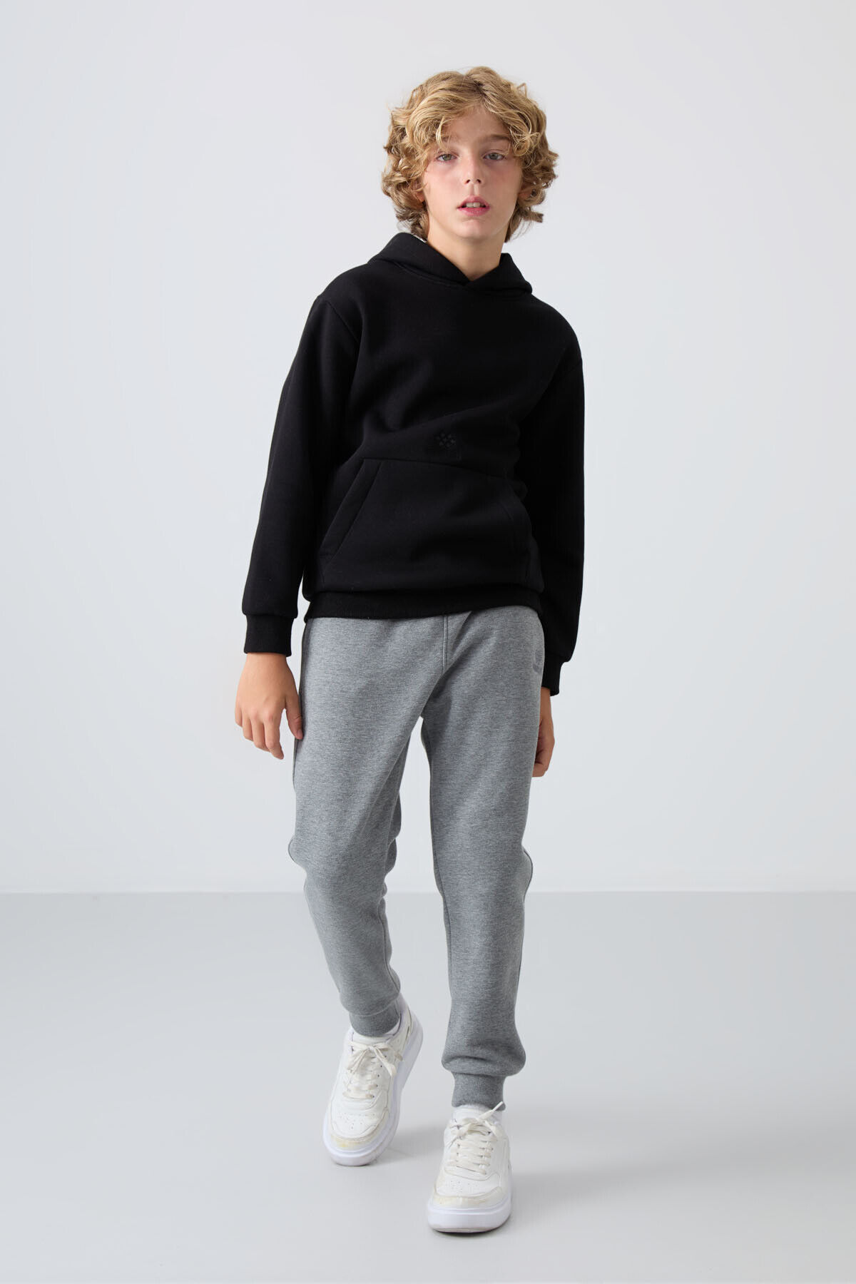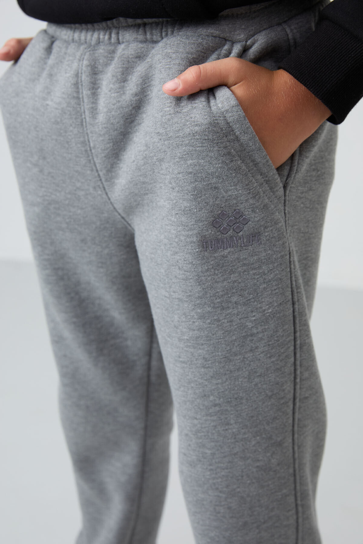 TommyLife Gri Melanj Pamuklu Kalın İçi Tüylü Standart Fit Nakışlı Erkek Çocuk Eşofman Alt - 11224