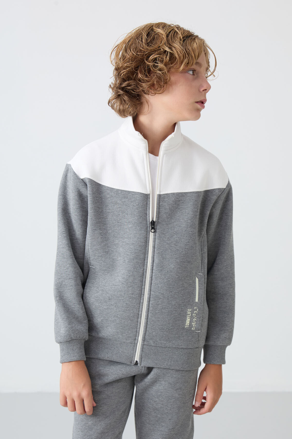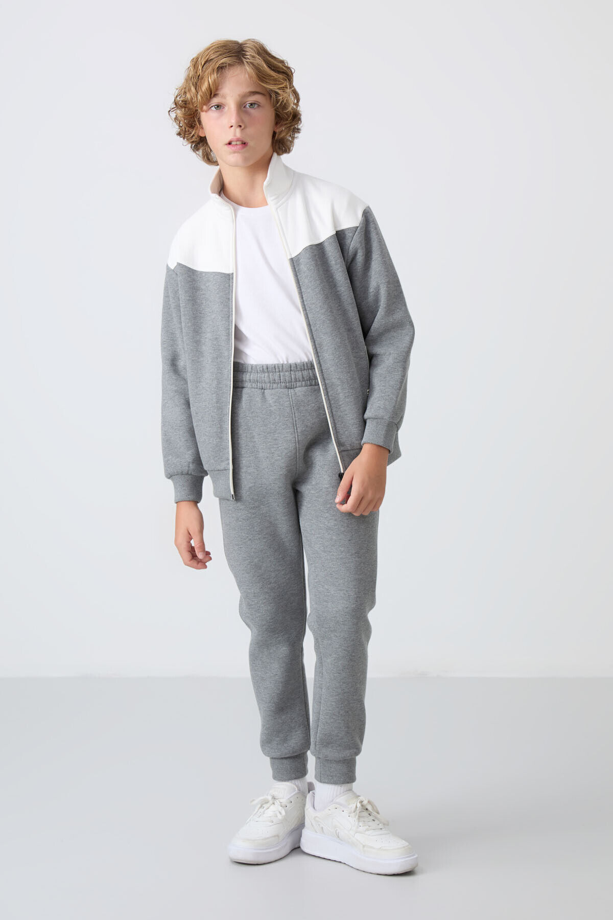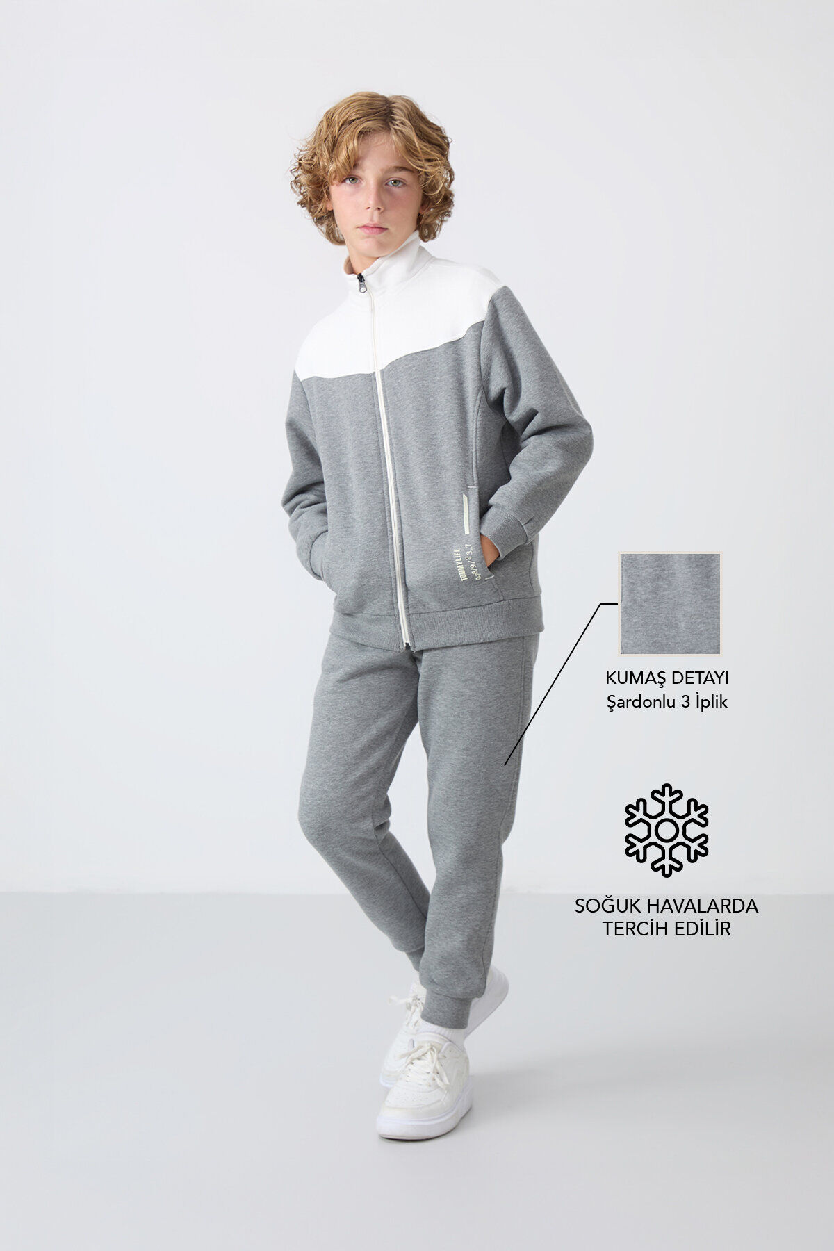 TommyLife Gri Melanj Pamuklu Kalın İçi Tüylü Standart Fit Nakışlı Erkek Çocuk Eşofman Takım - 11240