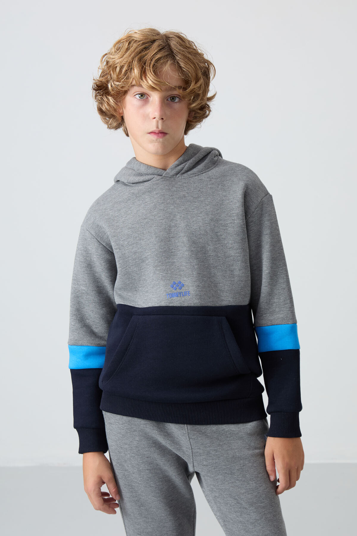 TommyLife Gri Melanj Pamuklu Kalın İçi Tüylü Standart Fit Nakışlı Erkek Çocuk Eşofman Takım - 11255