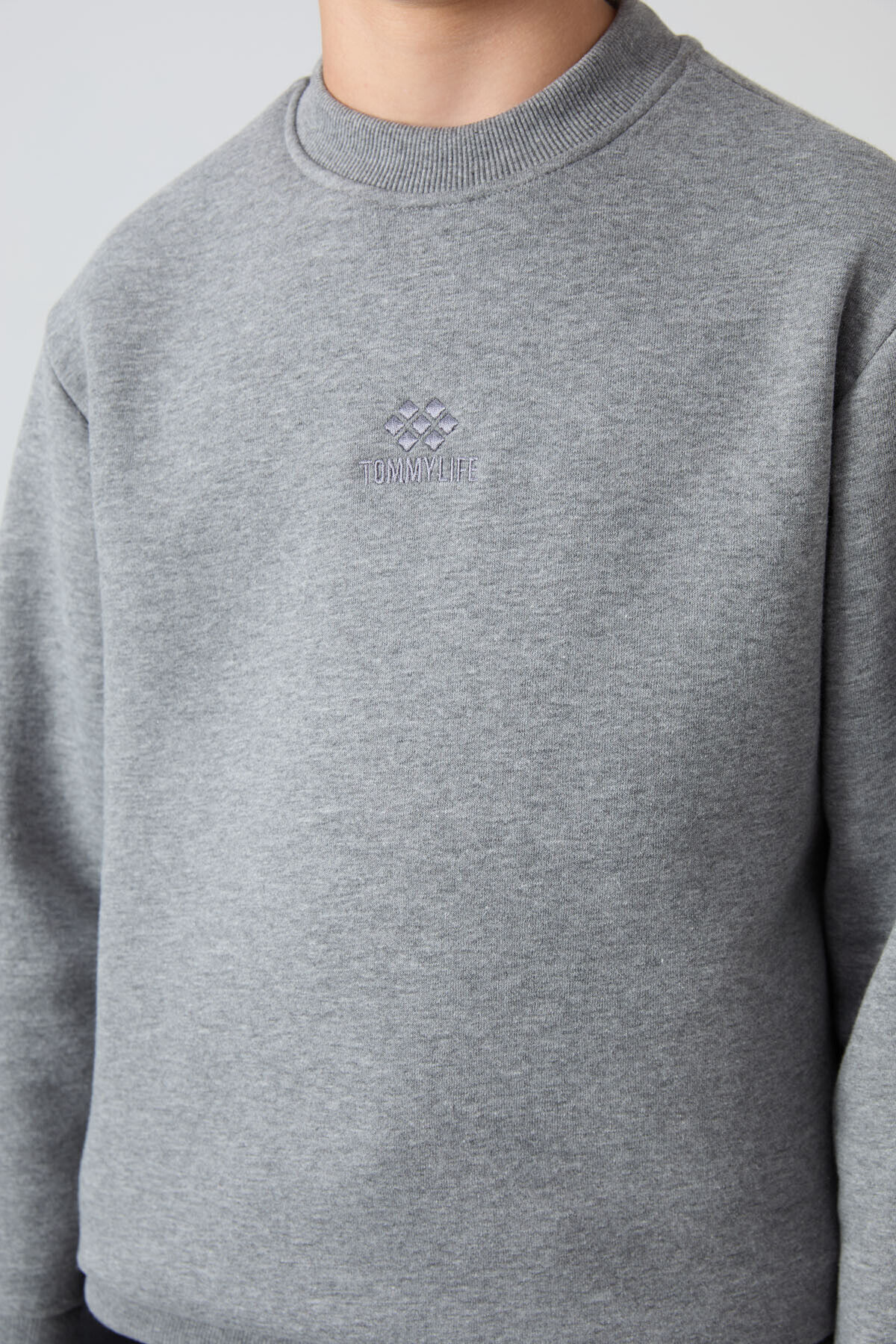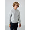Gri Melanj Pamuklu Kalın İçi Tüylü Standart Fit Nakışlı Erkek Çocuk Sweatshirt - 11232