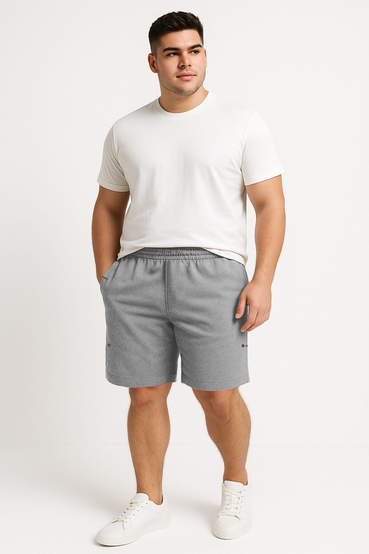TommyLife'in gri melanj erkek şortu, rahat formu ve büyük bedeniyle konfor ve şıklığı bir araya getiriyor. Cep detayları ve bağcıklı tasarımıyla pratik bir kullanım sunuyor.