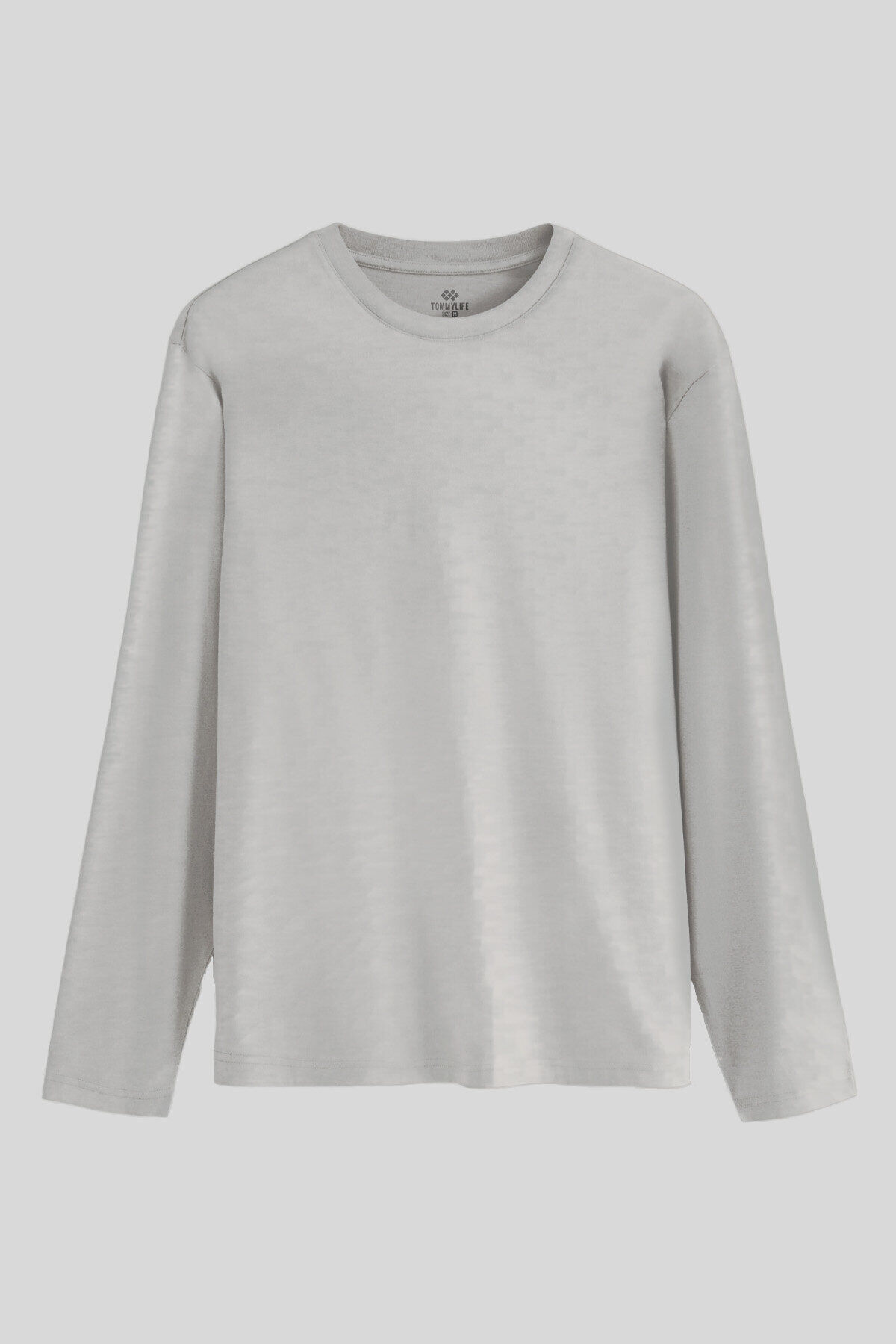 TommyLife Gri Melanj Standart Fit Basic O Yaka Uzun Kollu İnce Erkek T-Shirt - 87997
