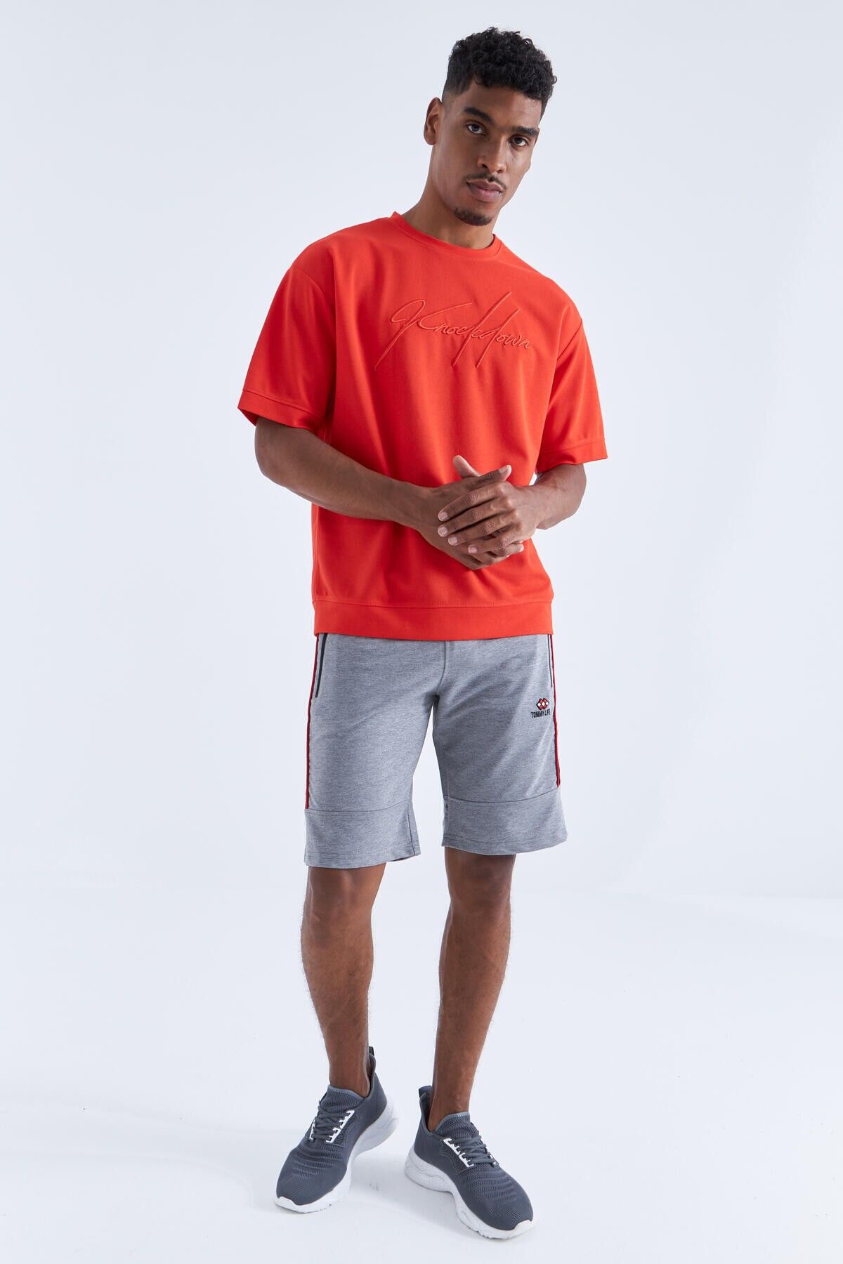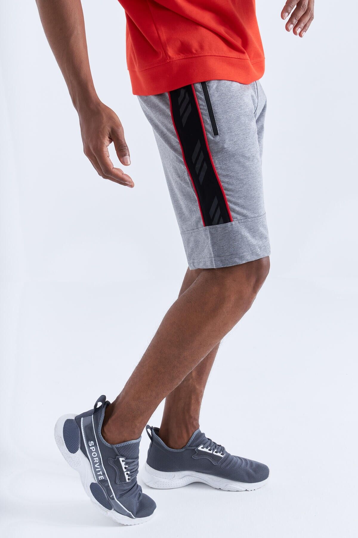 Gri Melanj Yan Şeritli Standart Kalıp Erkek Şort - 81148