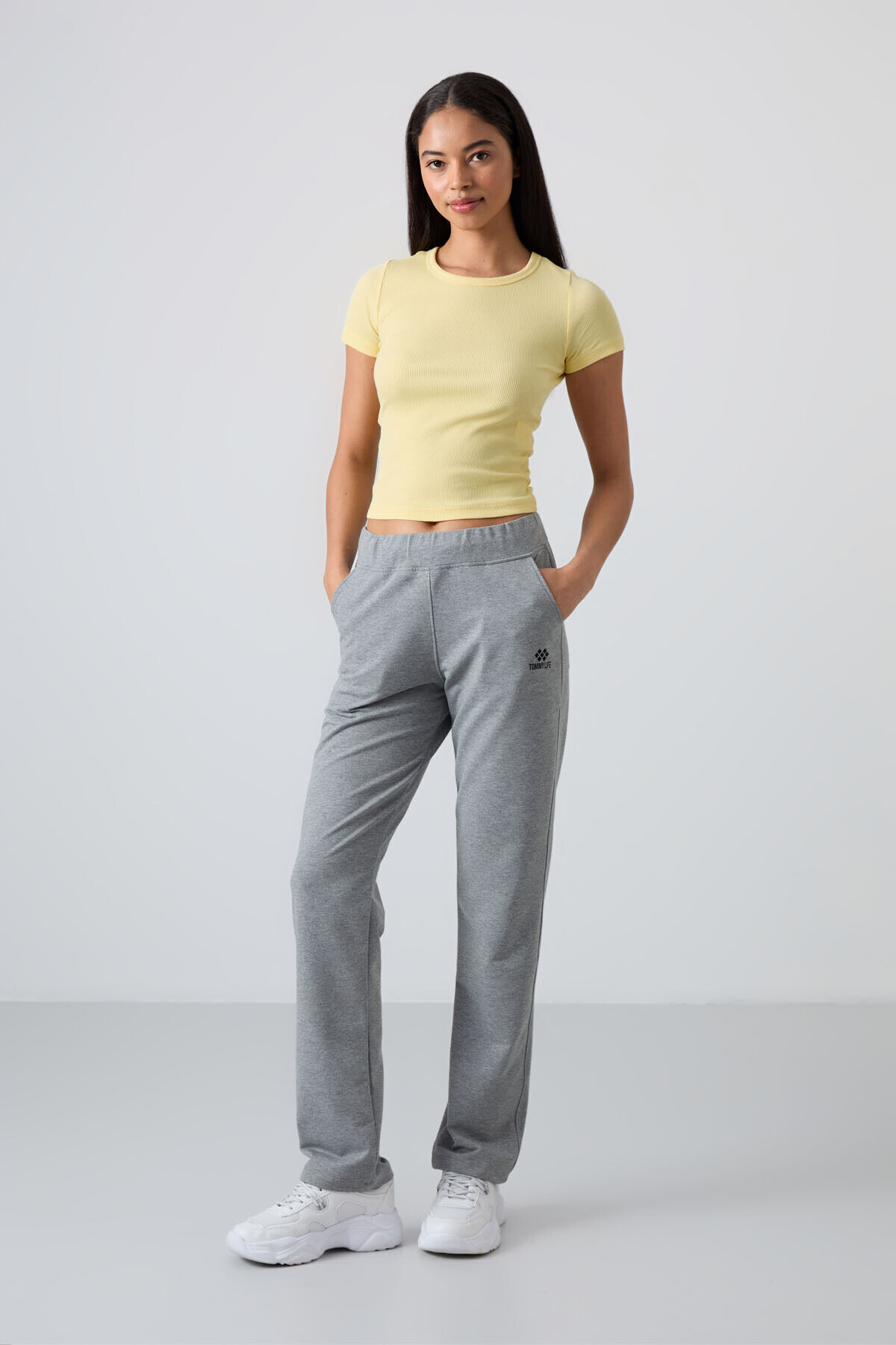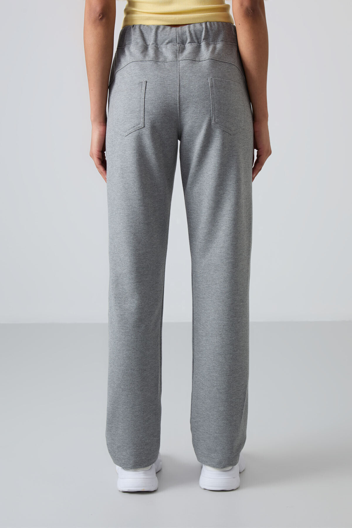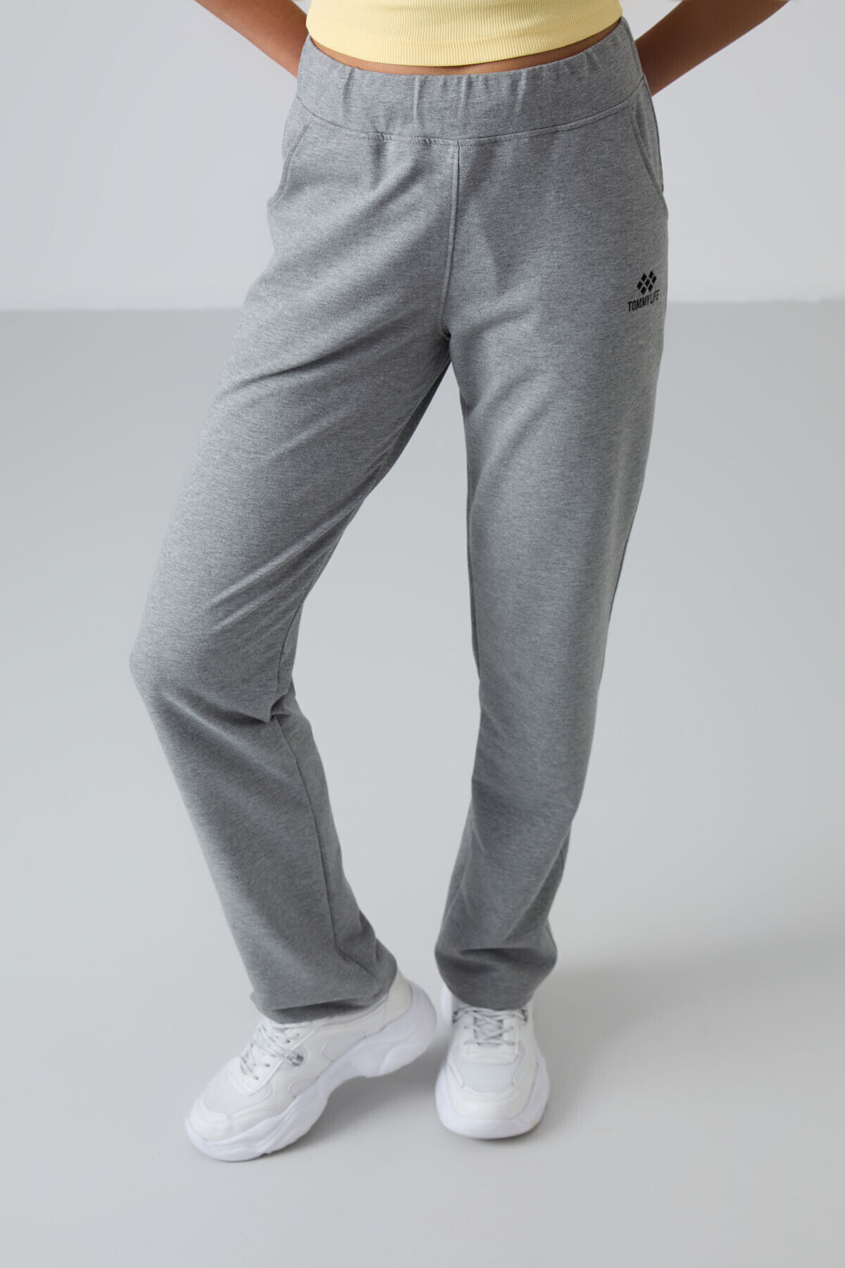TommyLife Gri Melanj Yüksek Bel Cepli Rahat Form Klasik Paça Kadın Eşofman Alt - 94185