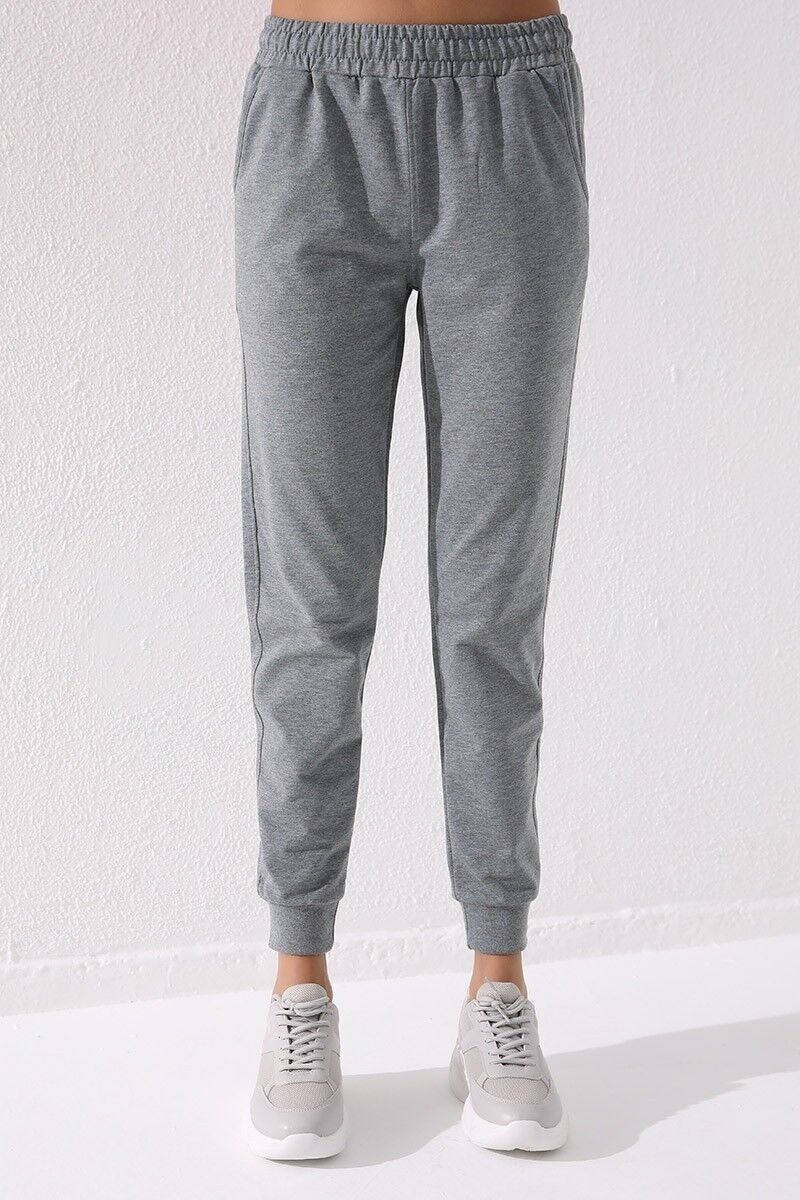 TommyLife Gri Melanj Yüksek Bel Jogger Rahat Form Manşetli Kadın Eşofman Alt - 94561
