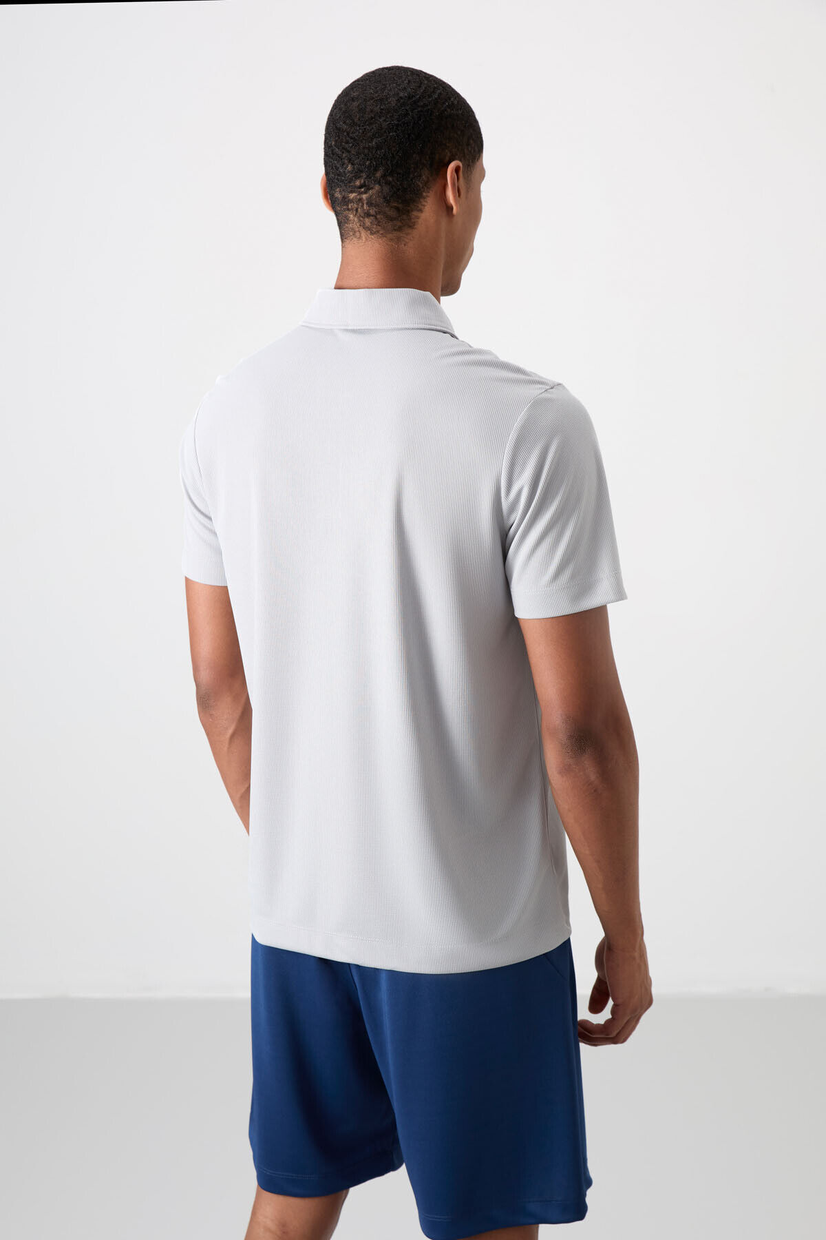 TommyLife Gri Nefes Alan Dokulu İnce Esnek Standart Fit Polo Yaka Erkek Performans T-Shirt - 88393