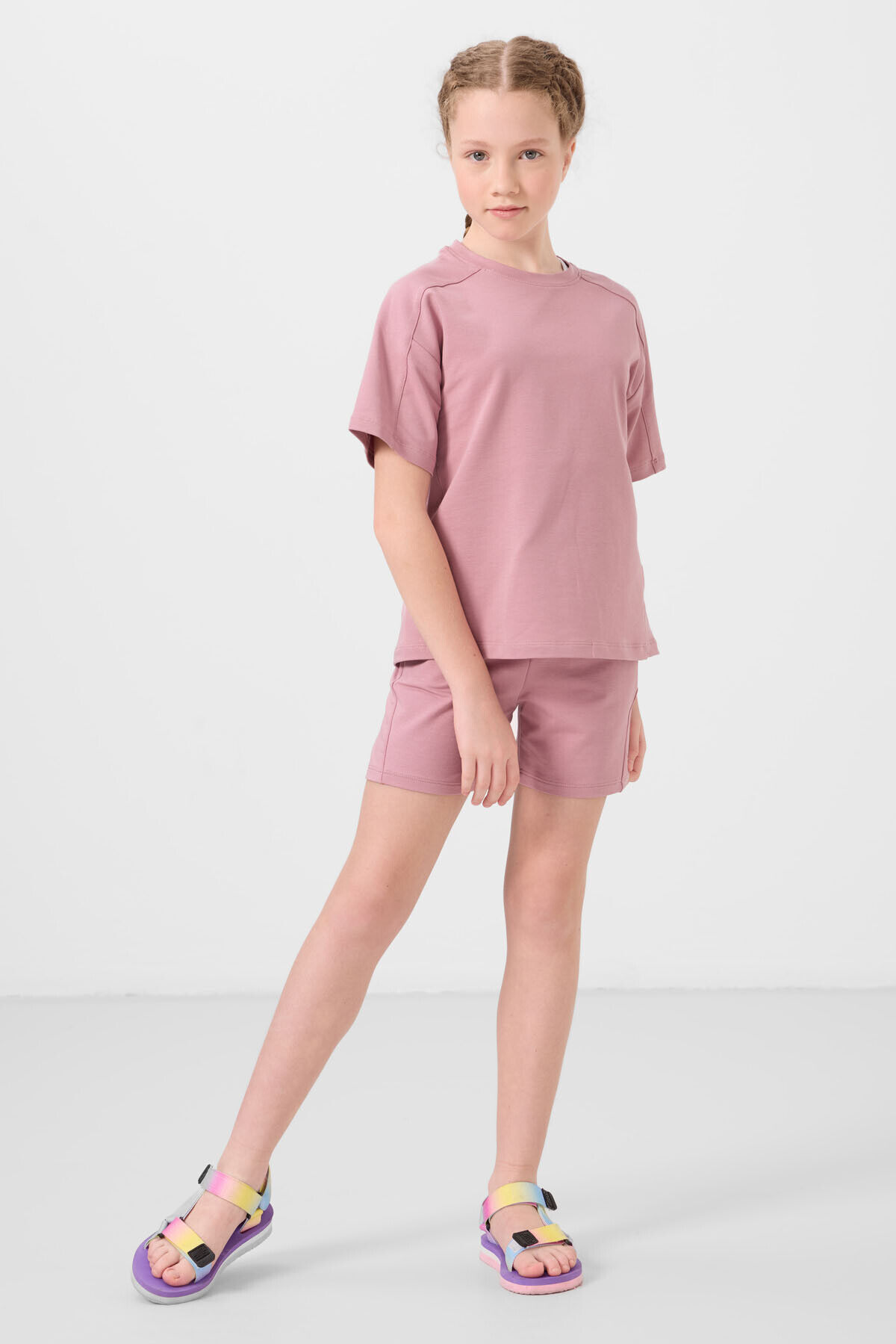 TommyLife Gül Kurusu Pamuklu Yumuşak Dokulu Standart Fit Basic Kız Çocuk Şort Takım - 75184
