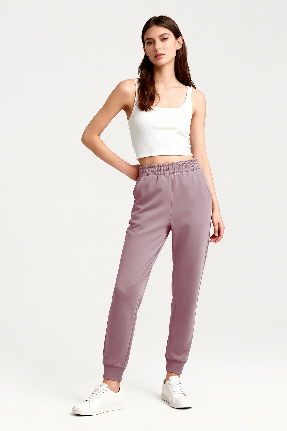 Gül Kurusu Yüksek Bel Jogger Rahat Form Manşetli Kadın Eşofman Alt - 94561