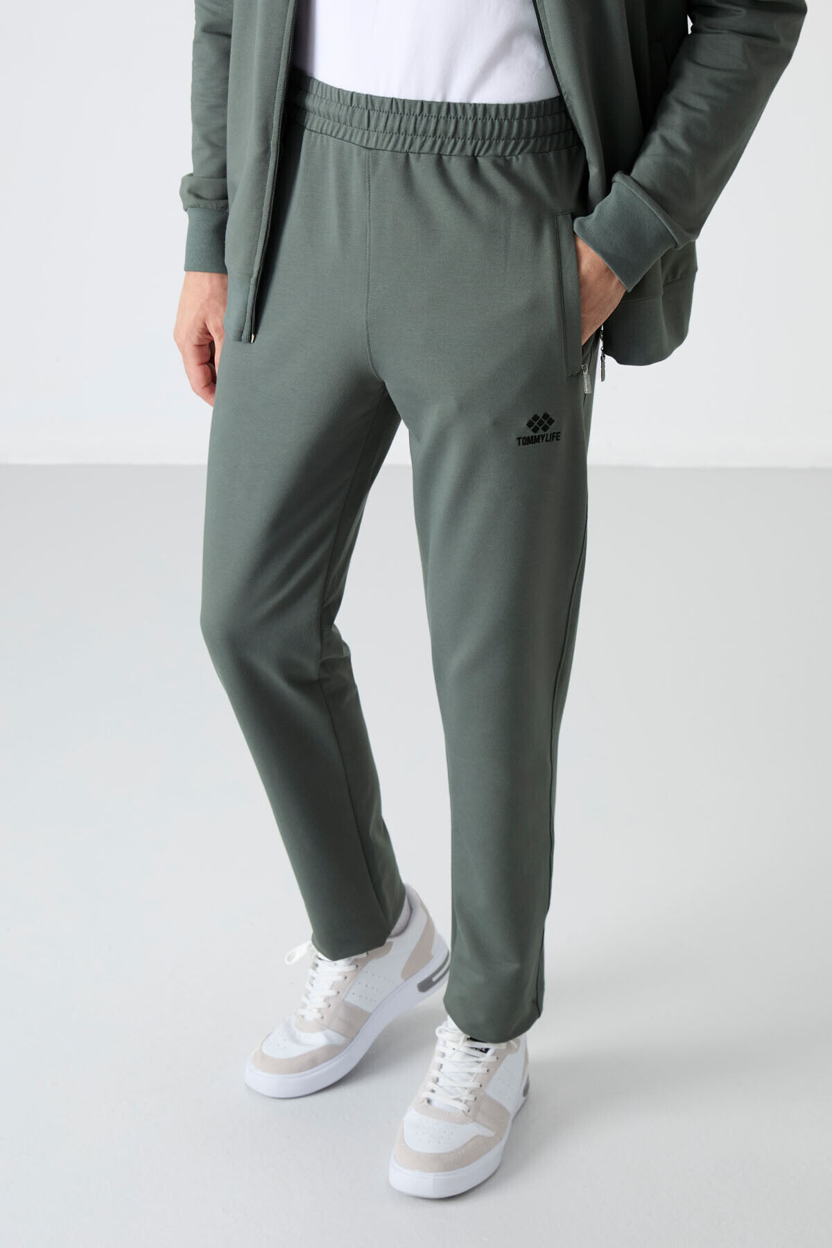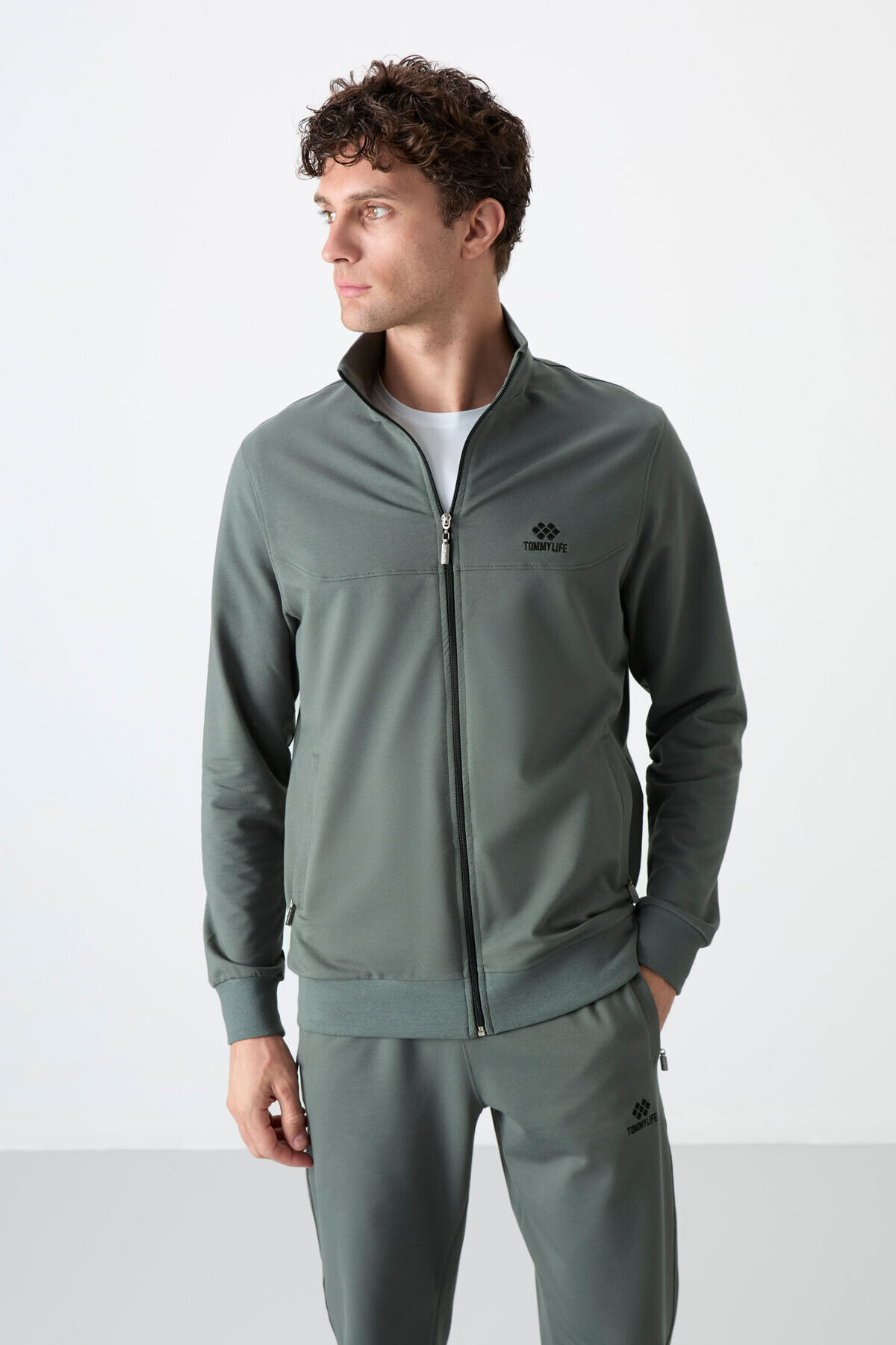 TommyLife Haki Dik Yaka Fermuarlı Rahat Form Klasik Paça Erkek Eşofman Takım - 85072