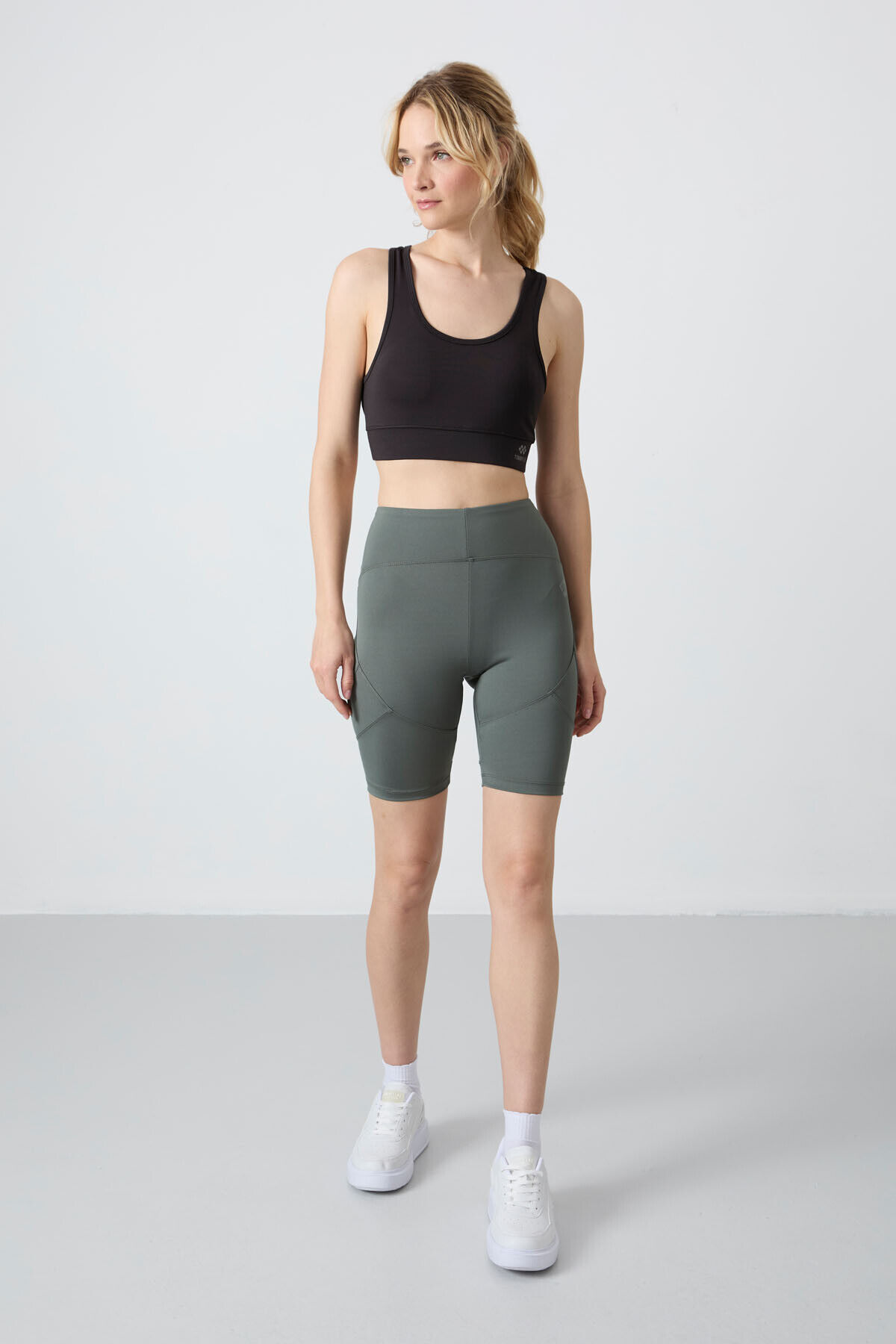 TommyLife Haki Esnek Standart Fit Performans Kadın Biker Tayt - 91013