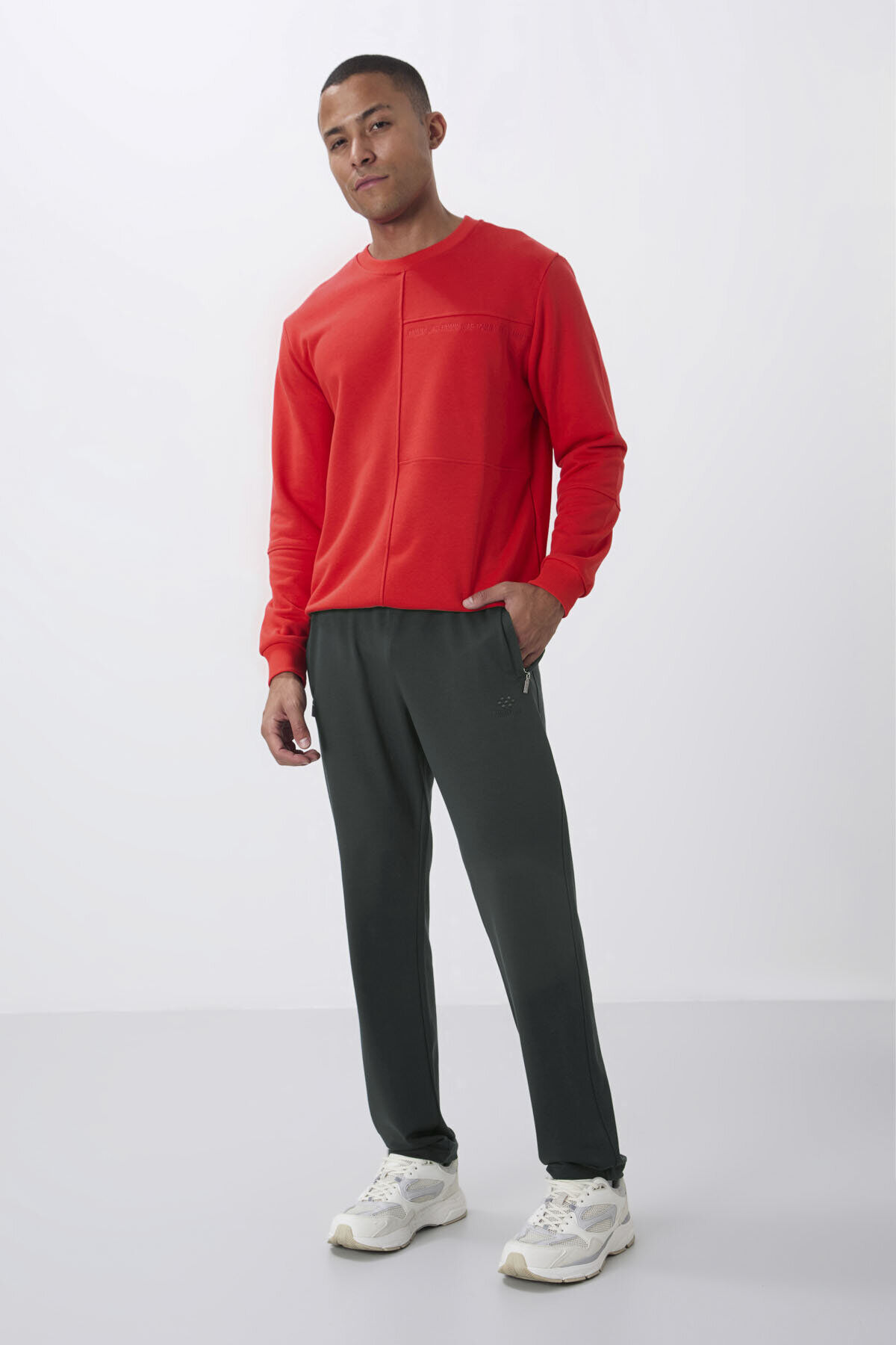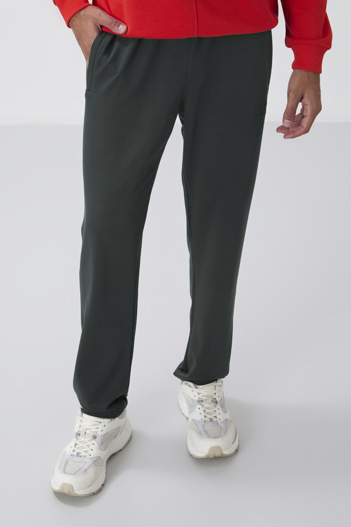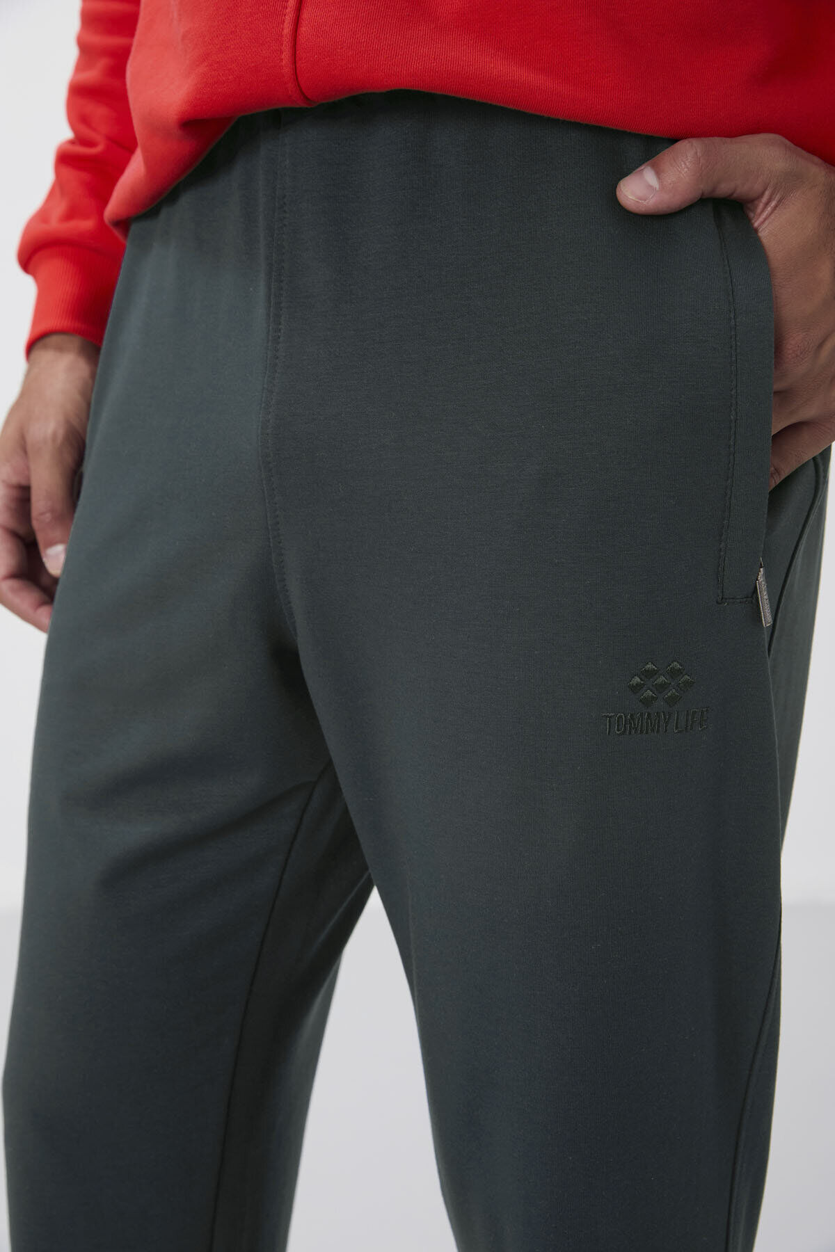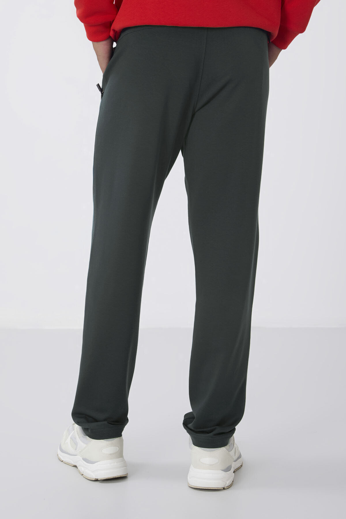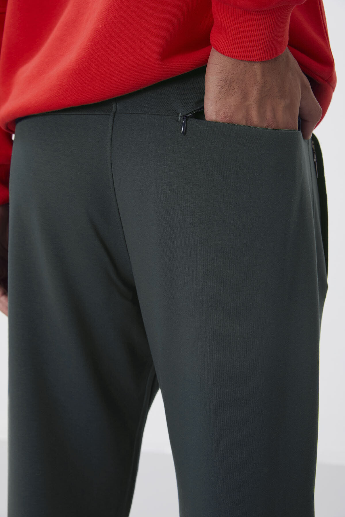 Haki Fermuar Cepli Dar Kalıp Klasik Paça Erkek Eşofman Alt - 84669