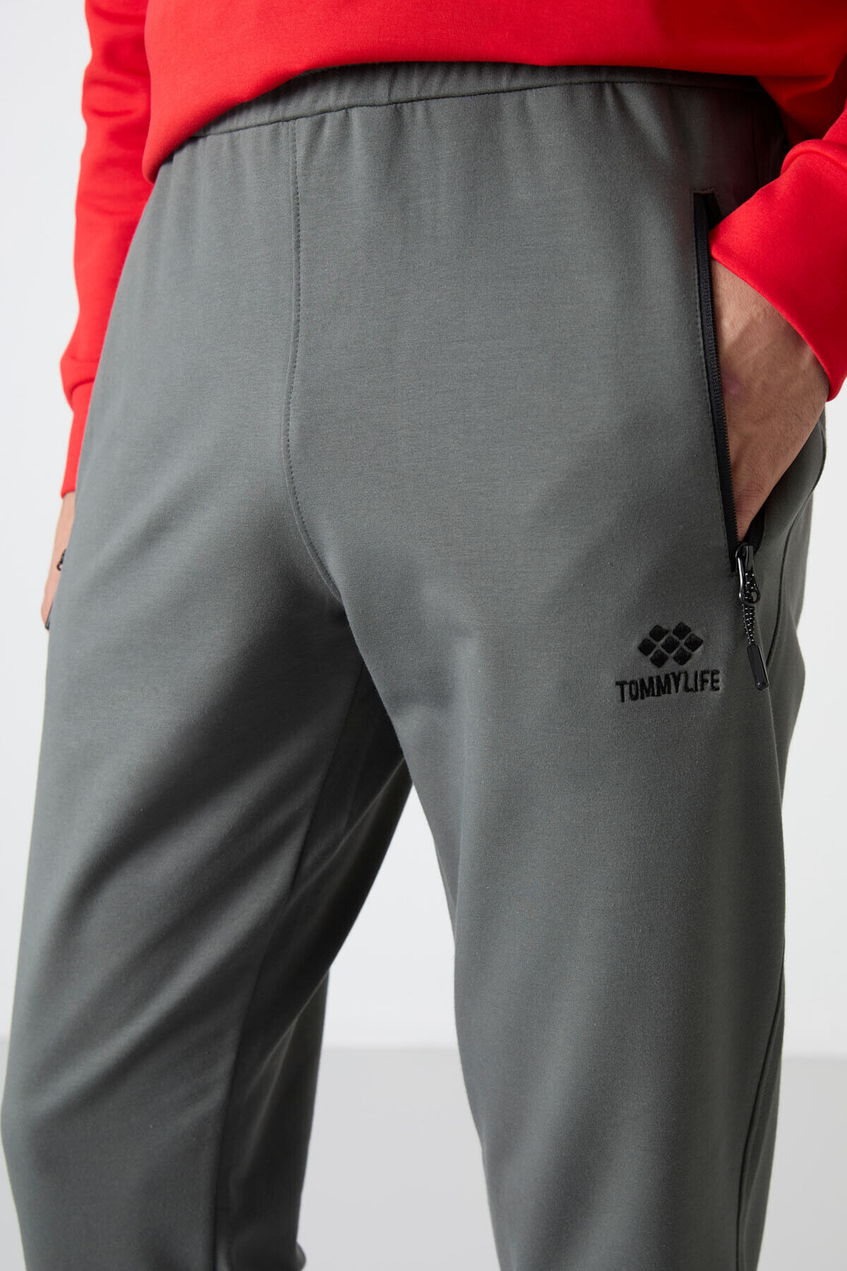 TommyLife Haki Fermuar Cepli Standart Kalıp Jogger Erkek Eşofman Alt - 84587