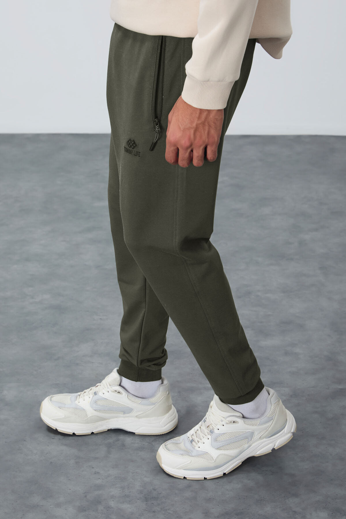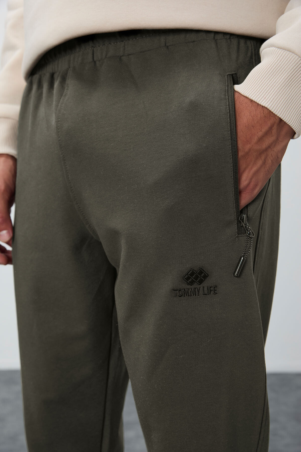 TommyLife Haki Fermuar Cepli Standart Kalıp Jogger Erkek Eşofman Alt - 84651